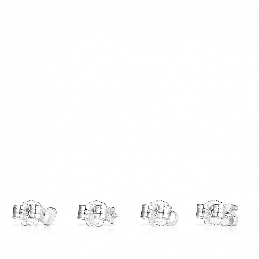 Набір із чотирьох сережок TOUS Cool Joy із стерлінгового срібла з ведмедиком, серцем, зіркою та перлиною ø3,5–4 мм. Застібка позаду. Техніка виготовлення: лиття
