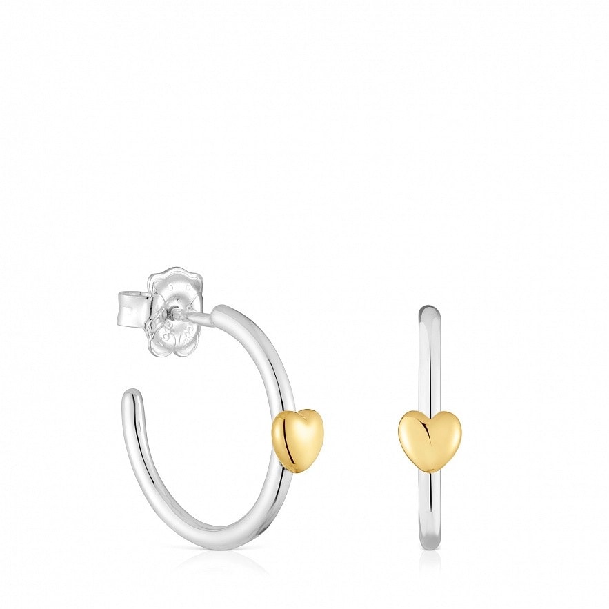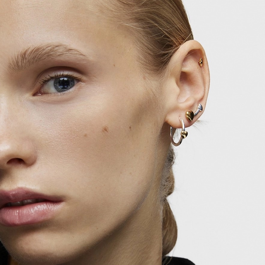 Сережки-кільця My Other Half двокольорові зі срібла 925 проби та з мотивом серце, зі срібла 925 проби покрите золотом 18 карат.