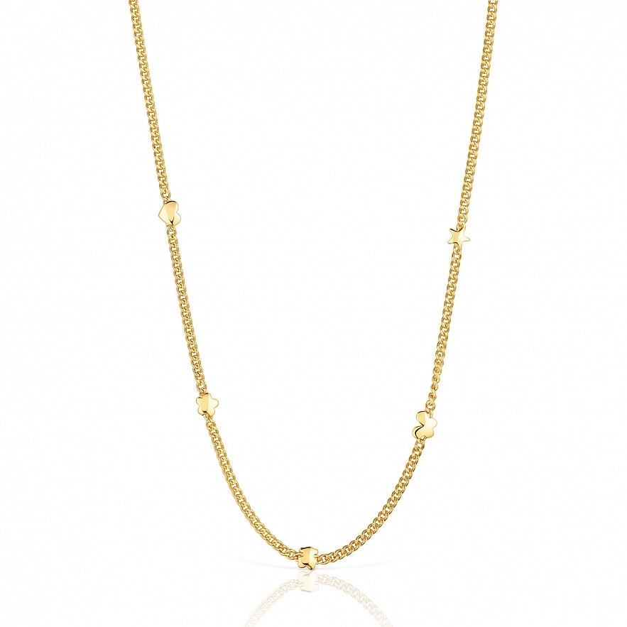 Намисто TOUS Bold Motif зі срібла 925 проби з покриттям Vermeil з мотивами. Мотиви: квітка, зірка, ведмедик, серце та метелик. Розмір мотивів: 5,6 мм. Довжина кольє: 42-45 см. Застібка-лобстер.