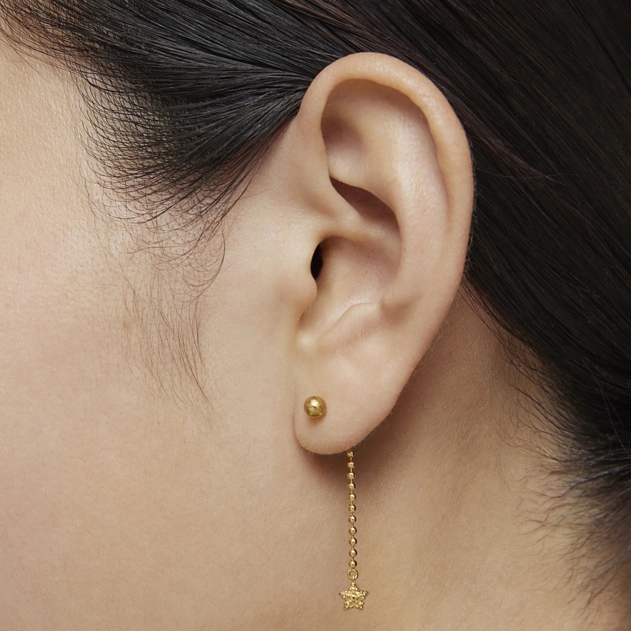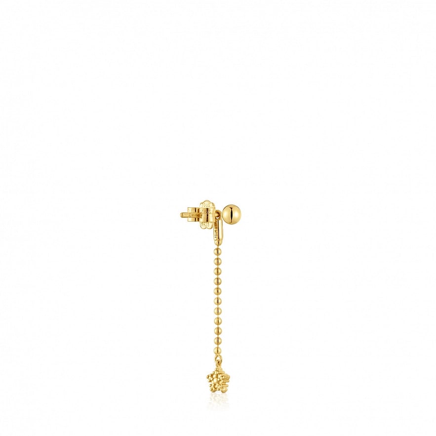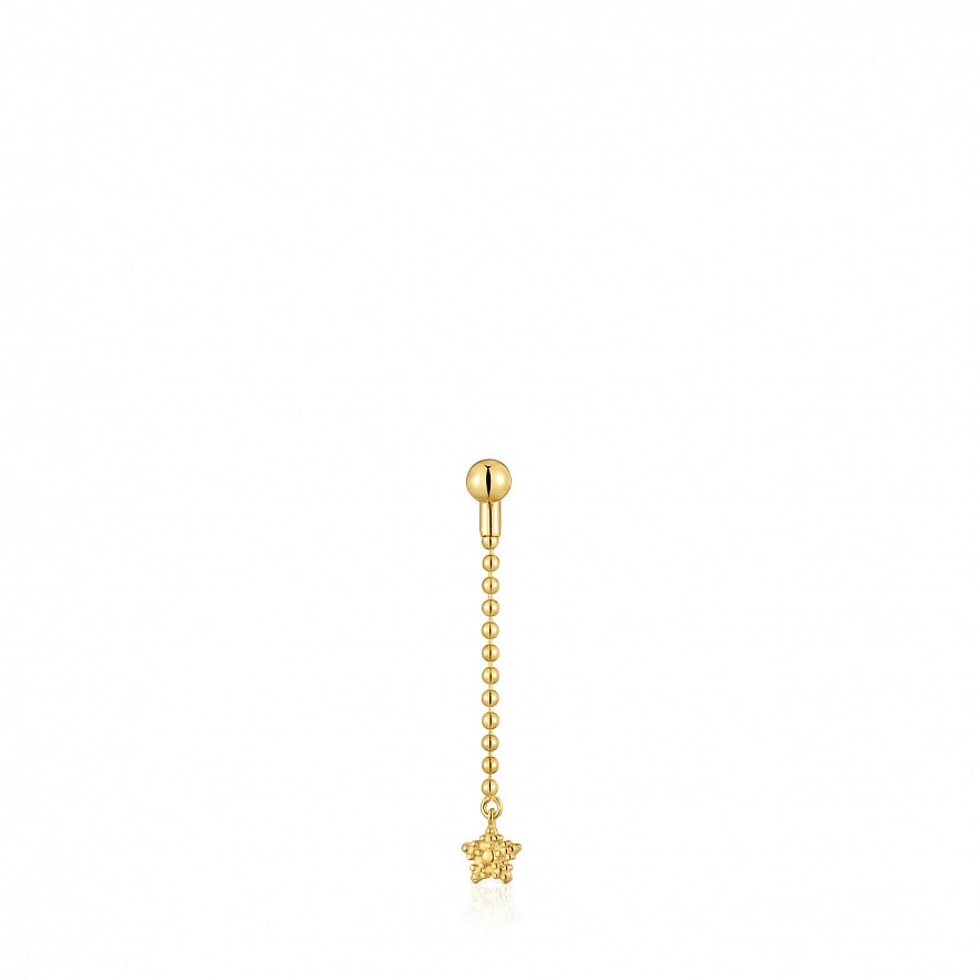 Довга сережка TOUS Grain з покриттям із 18-каратного золота поверх срібла з мотивом зірки. Довжина сережки: 35 мм. Розмір мотиву: 5,1 мм. Застібка. Виріб виконано зі стерлінгового срібла із золотим напиленням від 18 до 23 карат товщиною 3 мікрони. Така якість гарантує велику довговічність прикраси. Примітка: довгу сережку можна зняти; болт можна використовувати як самостійну сережку.