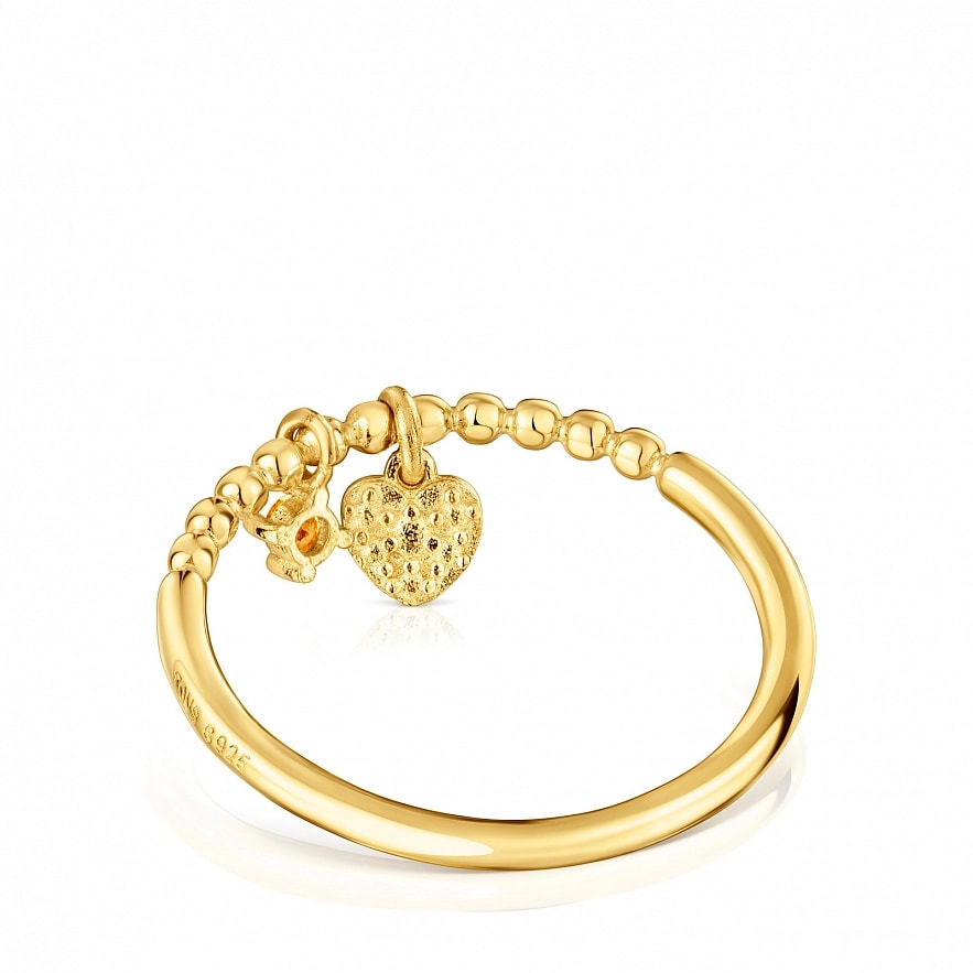 Каблучка TOUS Grain з покриттям з 18-каратного золота поверх срібла, помаранчевим гранатом круглого ограновування 2 мм і підвісним брелоком у вигляді серця. Розмір серця: 4,4 мм. Товщина каблучки: 1,5 мм. Виріб виконано зі стерлінгового срібла із золотим покриттям від 18 до 23 карат завтовшки 3 мікрони. Така якість гарантує велику довговічність прикраси.