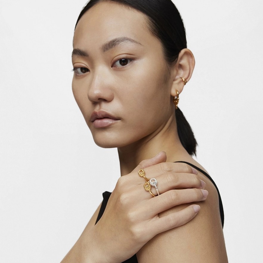 Каблучка TOUS Manifesto зі срібла 925 проби з покриттям Vermeil та центральним мотивом. Розмір мотиву: 6,7 мм. Товщина каблучки: 1,44 мм.