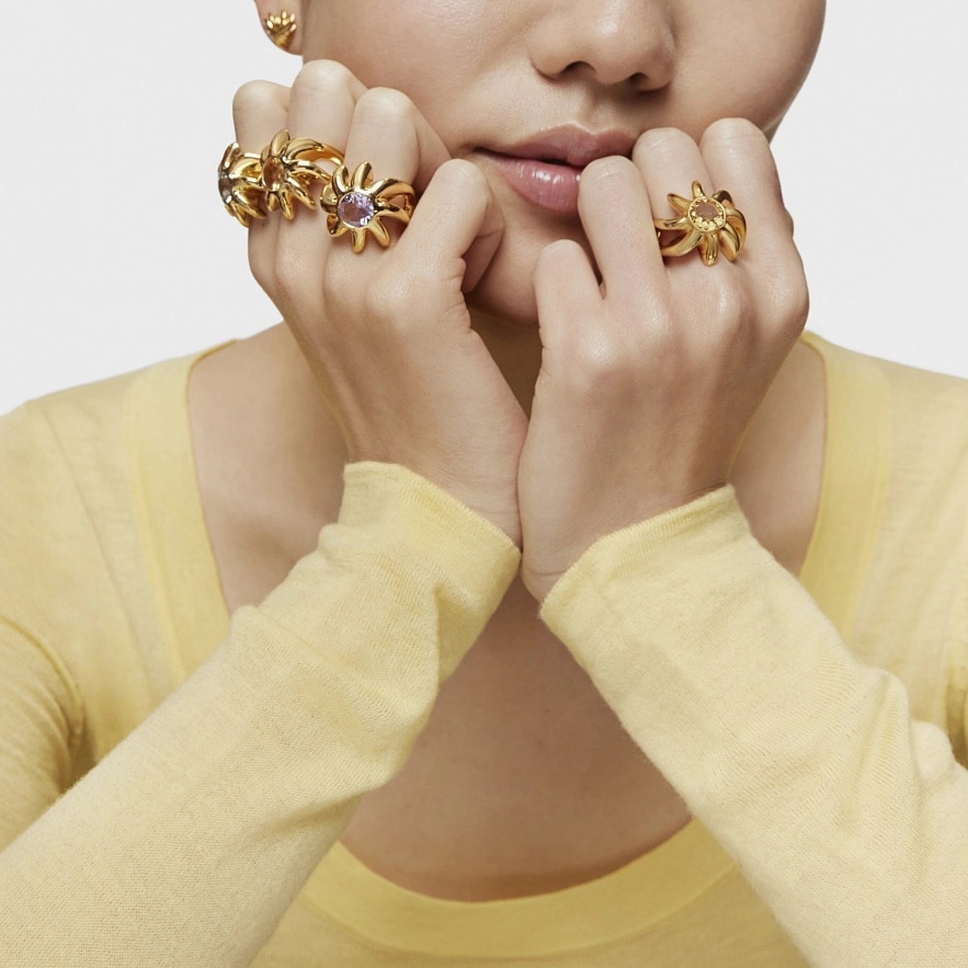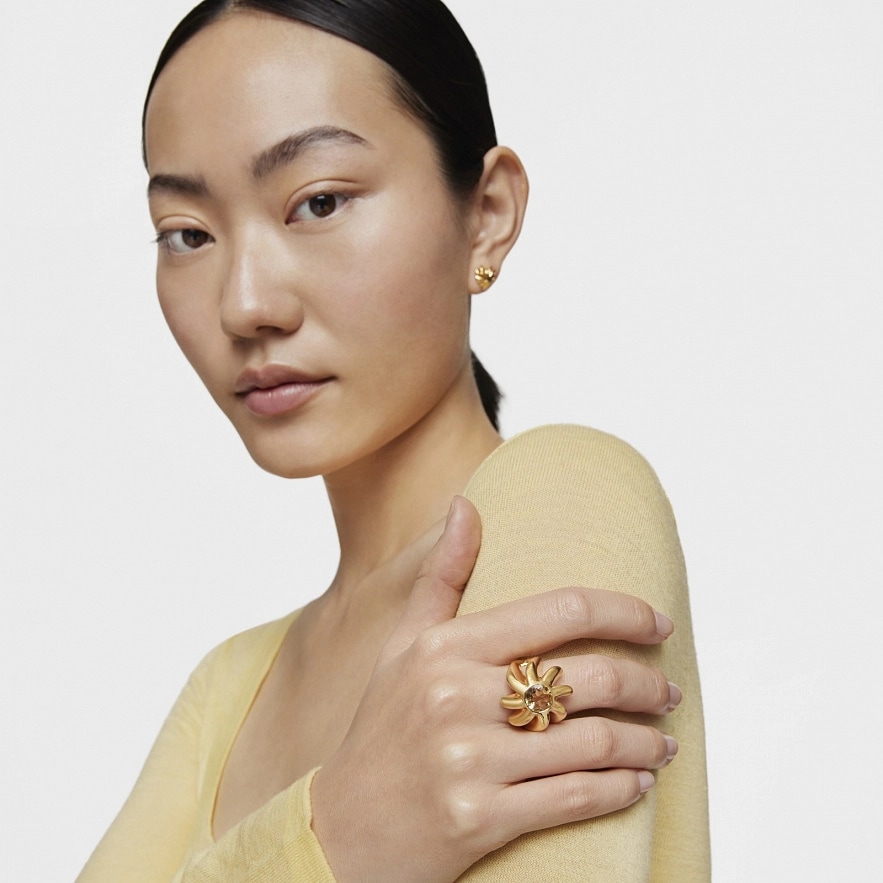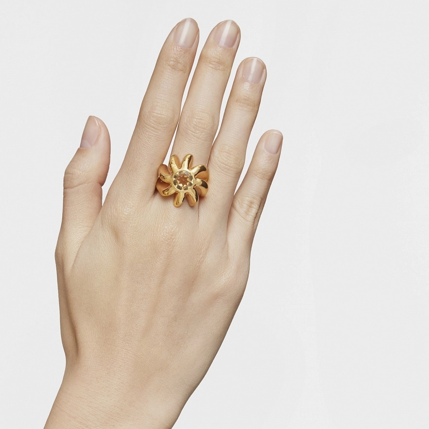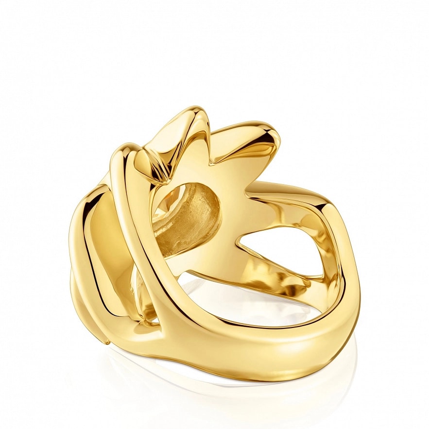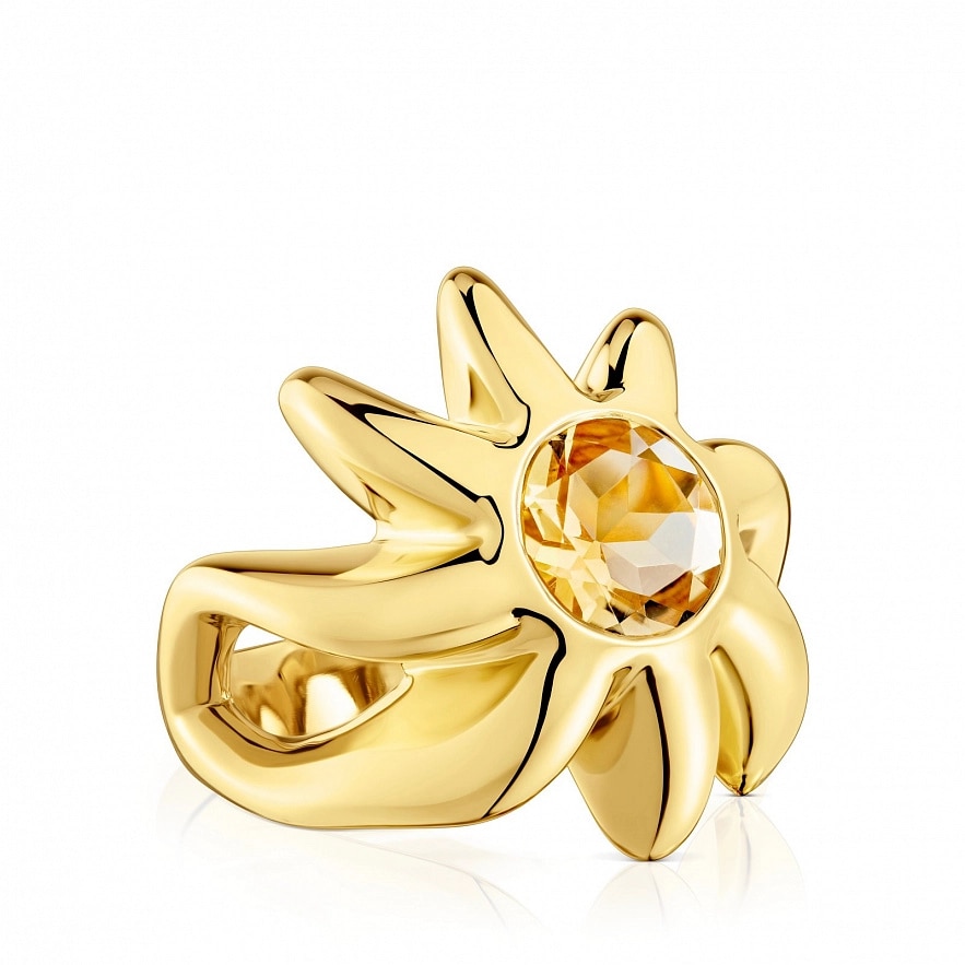 Каблучка TOUS Galia зі срібла 925 проби з покриттям Vermeil та огранованим круглим цитрином. Розмір каменю: 9 мм. Ширина каблучки: 22.90 мм. Товщина каблучки: 2,5 мм.