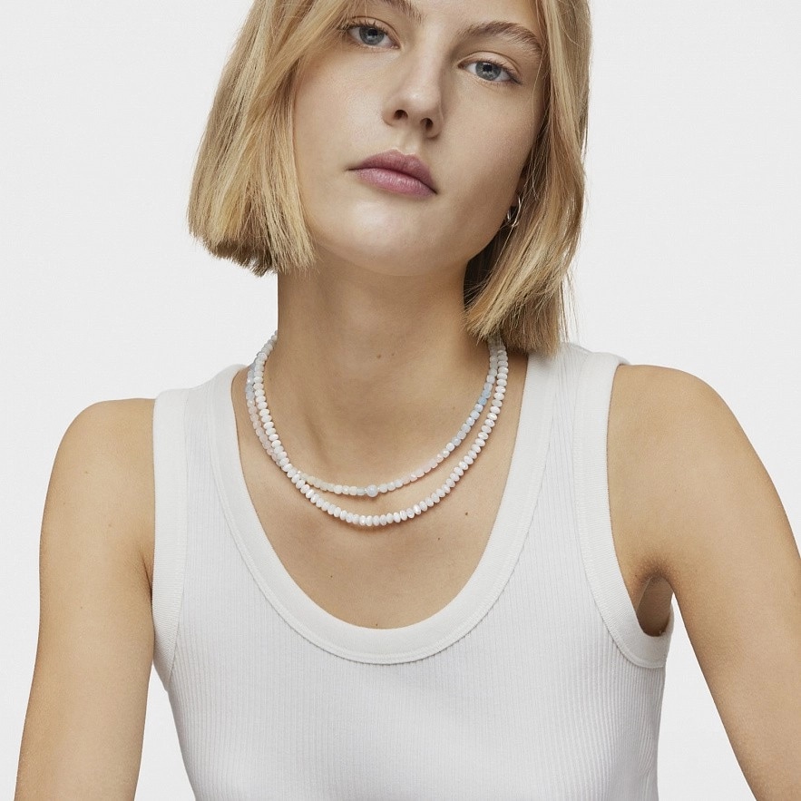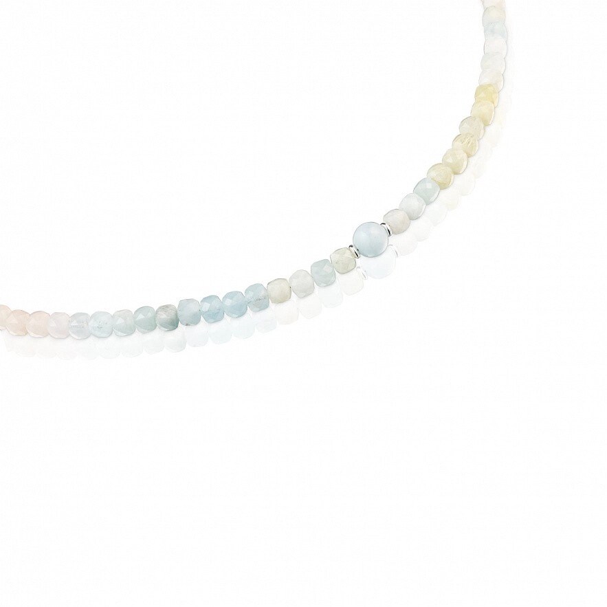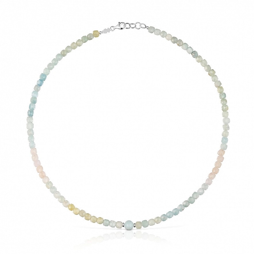 Намисто TOUS Basic Colors зі срібла 925 проби з берилієм Дорогоцінні камені: троянда морганіт, блакитний аквамарин і берилій. Розмір дорогоцінного каменю: берилій 4,5 мм і центральний камінь аквамарину 6-6,5 мм Довжина намиста: 43,5 см. Застібка-лобстер.