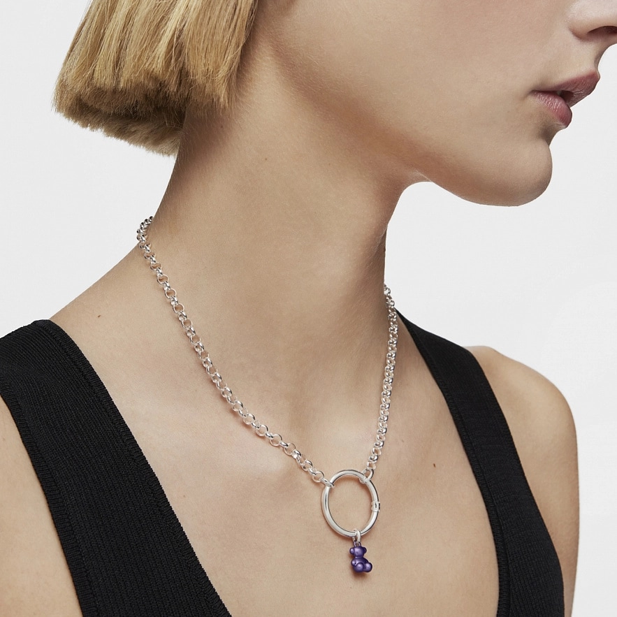 Кулон TOUS Bold Bear зі сталі темно-бузкового кольору з кільцем зі срібла 925 проби. Розмір ведмедика: 11 мм. Цей виріб не включає в себе ланцюжок.