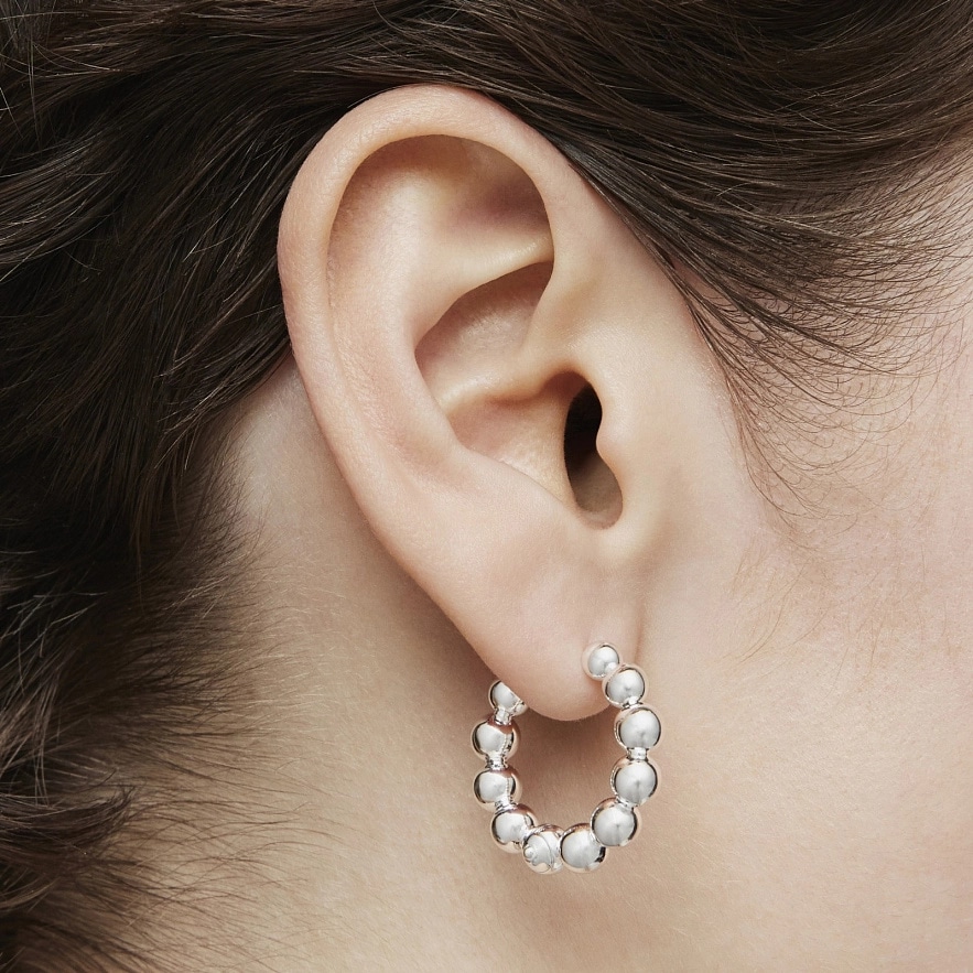 Сережки TOUS Gloss зі срібла 925 проби з шармами у формі кульок. Діаметр сережок: 15 мм.
