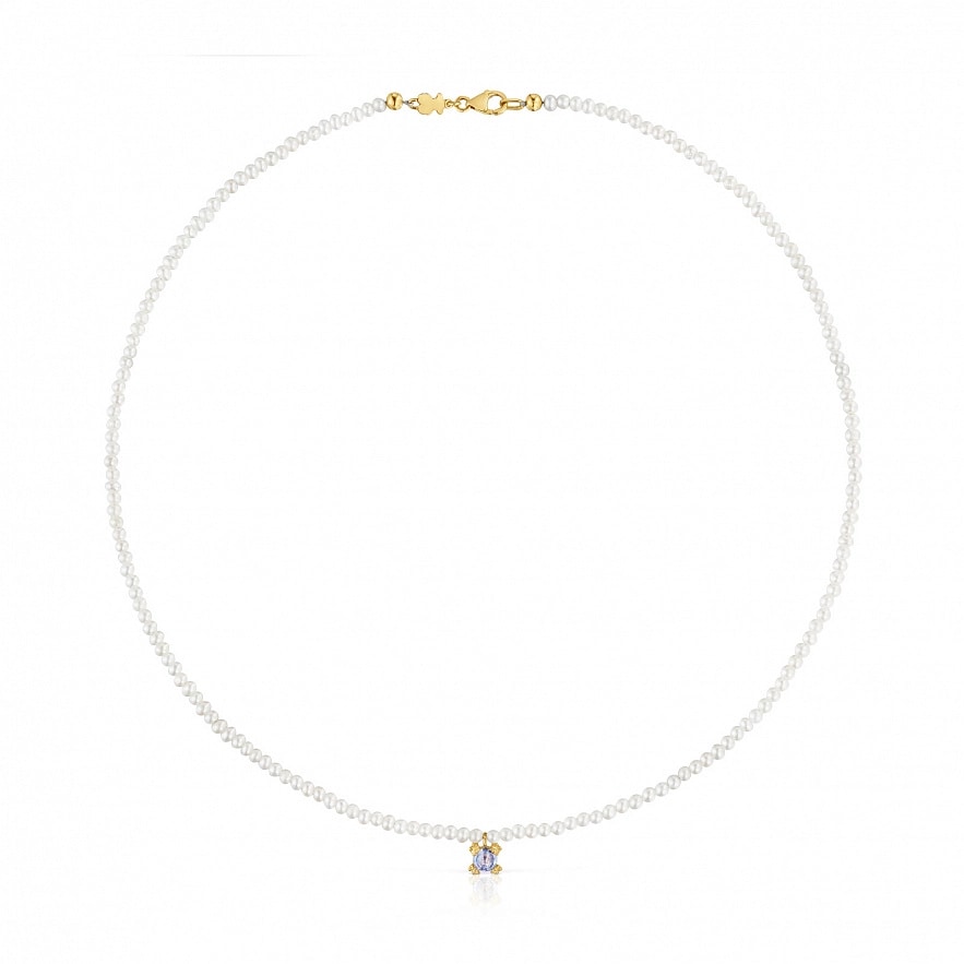 Намисто TOUS Color Pills з 18-каратного жовтого золота, культивованої прісноводної перлини та огранованого круглого танзаніту. Розмір дорогоцінного каменю: 4 мм. Розмір культивованої перлини: 2-2,5 мм. Довжина намиста: 40 см. Застібка - пружинне кільце.