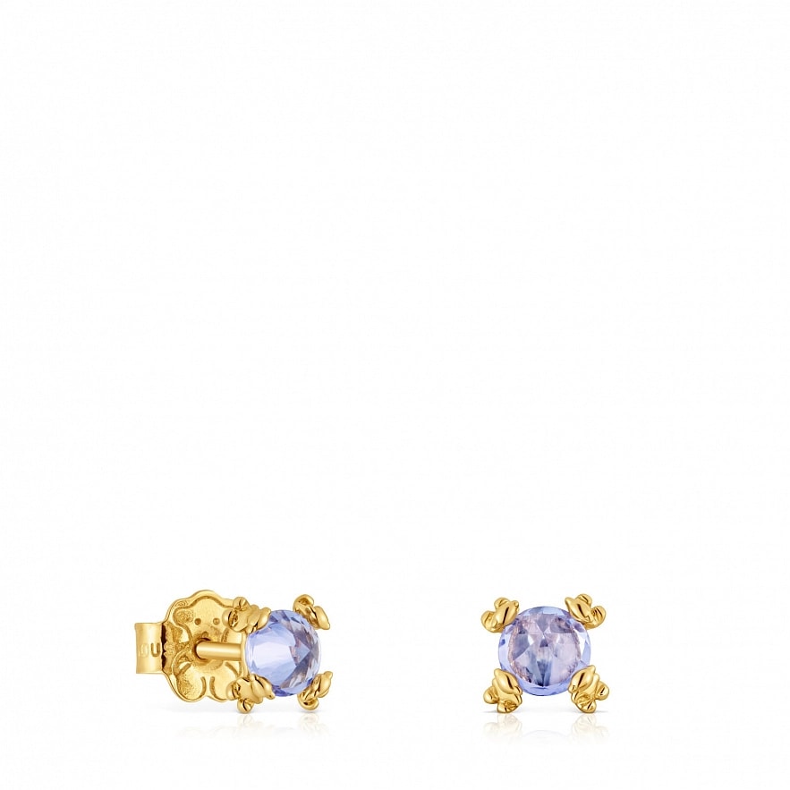 Сережки TOUS Color Pills з жовтого золота 18 карат з огранованим круглим танзанітом. Розмір каменю: 6 мм.