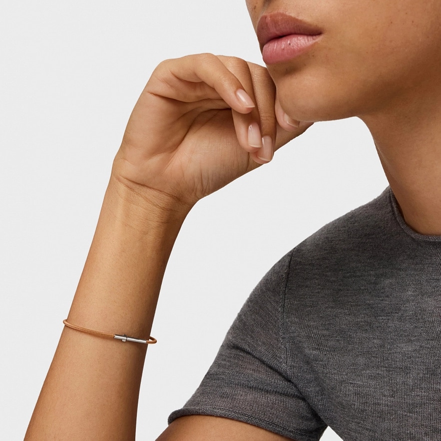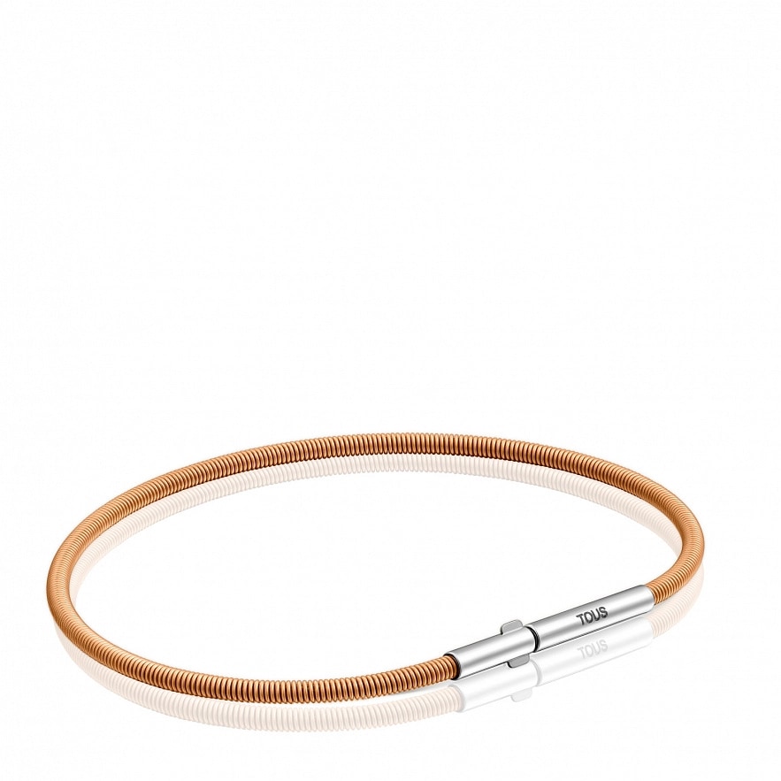 Браслет TOUS Mesh Tube з IP-сталі помаранчевого кольору. Товщина браслета: 2 мм. Довжина браслета: 17 см. Подвійна застібка-кліпса.