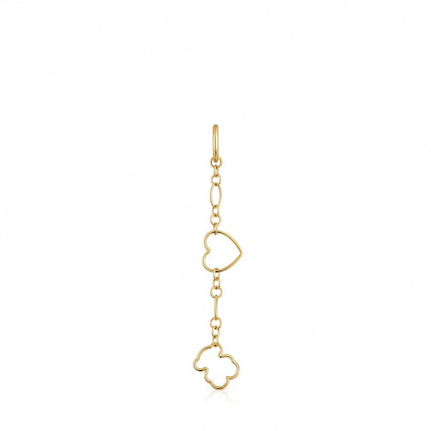 Моносережка TOUS New Silueta зі срібла 925 проби з покриттям Vermeil з мотивами. Мотиви: 14,5 мм серце та 16 мм ведмедик. Розмір сережки: 90 мм.
