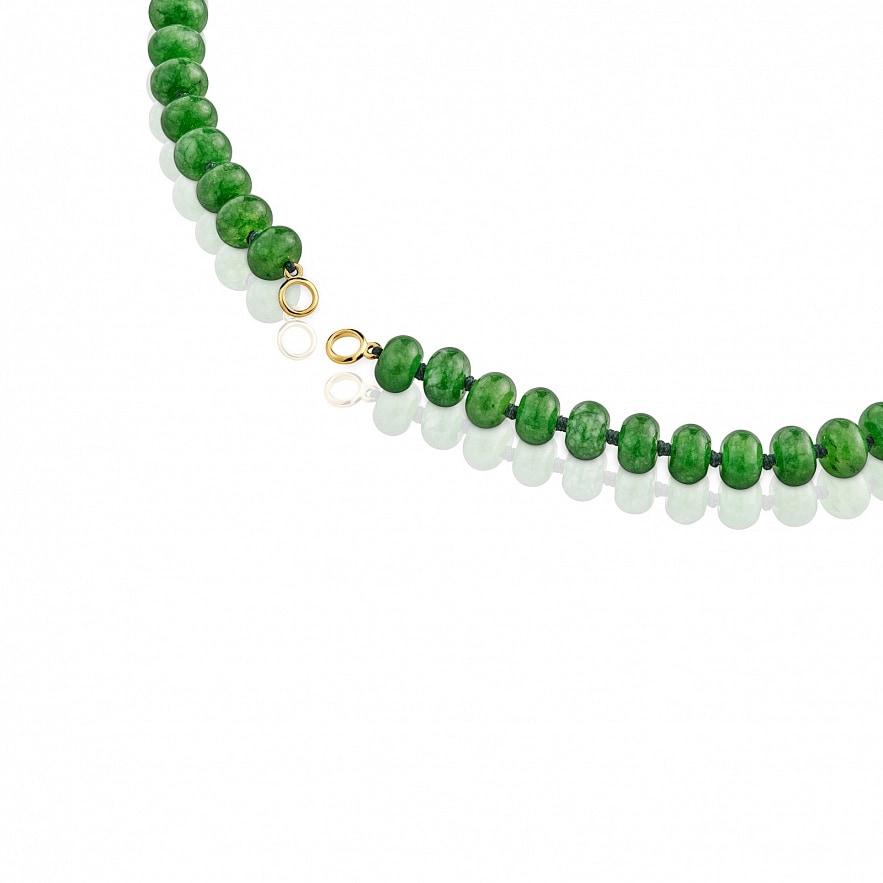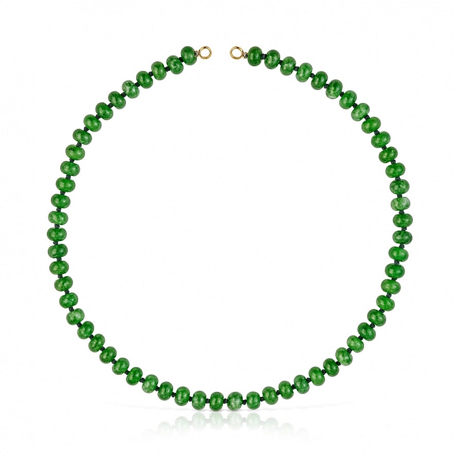 Намисто TOUS Hold зі срібла 925 проби з покриттям Vermeil та обробленому зеленому кварциту. Розмір каменю: 8 мм. Загальна довжина: 43 см. Примітка: як застібку можна поєднувати з кулонами з колекції Hold або Hold Oval.