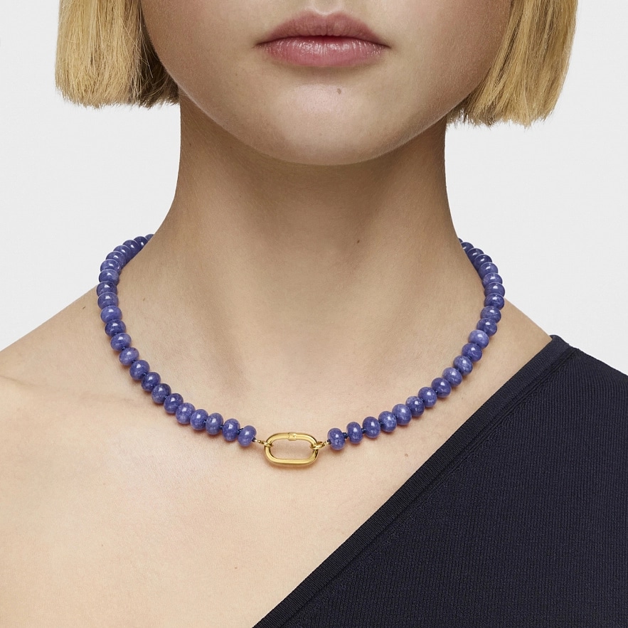 Намисто TOUS Hold зі срібла 925 проби з покриттям Vermeil та обробленому блакитному кварциту. Розмір каменю: 8 мм. Загальна довжина: 43 см. Примітка: як застібку можна поєднувати з кулонами з колекції Hold або Hold Oval.