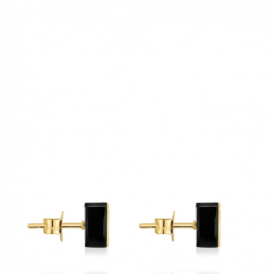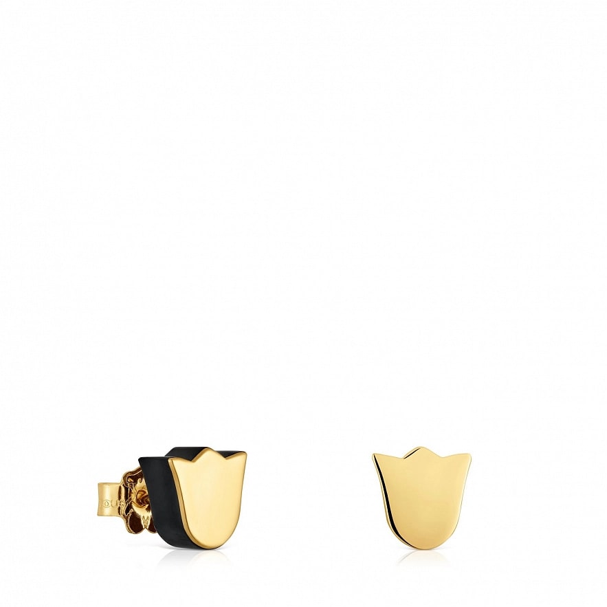Сережки TOUS 1950 з жовтого золота 18 карат з огранованим оніксом у формі тюльпана. Розмір сережок: 8 мм.