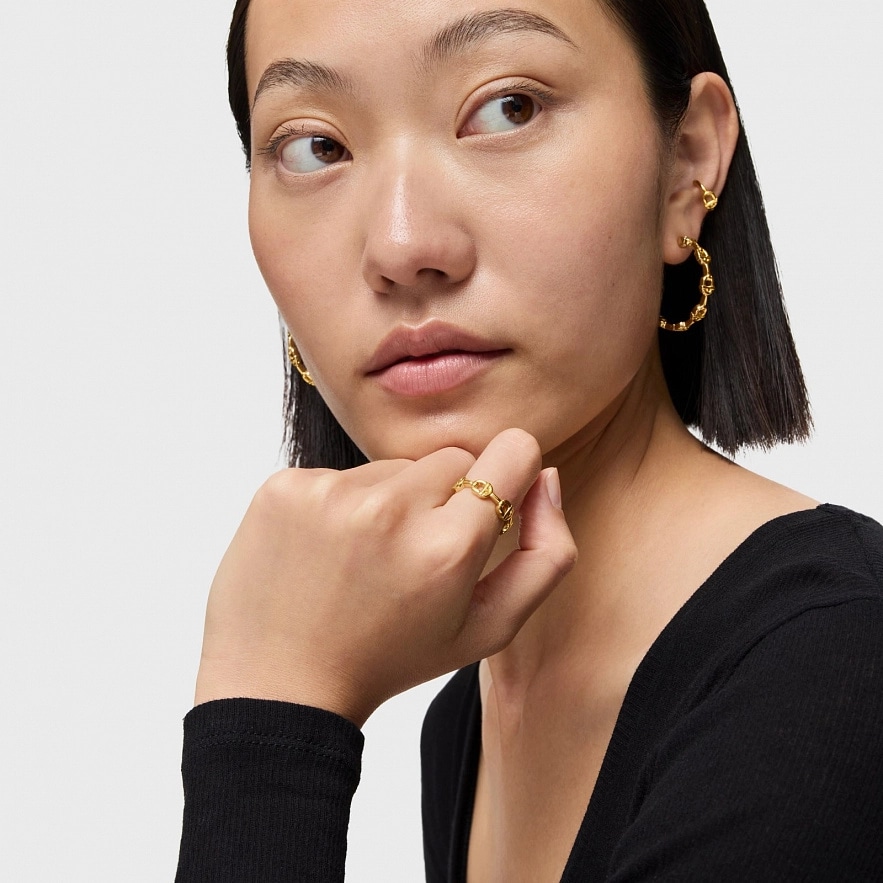 Каблучка TOUS Manifesto з логотипом зі срібла 925 проби з покриттям Vermail. Товщина каблучки: 5,6 мм.