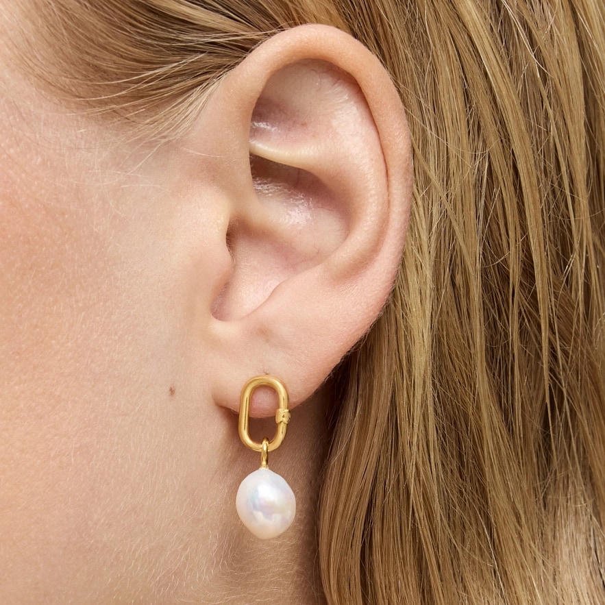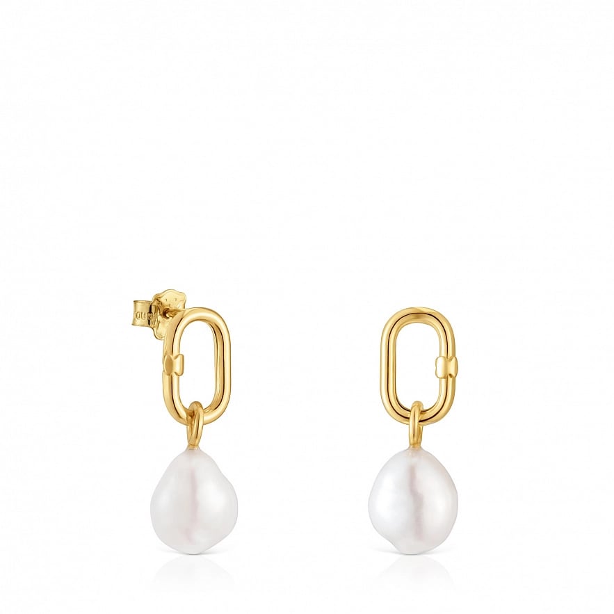Сережки TOUS Hold Oval з жовтого золота 18 карат та прісноводних культивованих перлин. Розмір культивованої перлини: 9 мм. Розмір сережок: 12 мм. Застібка пусет.