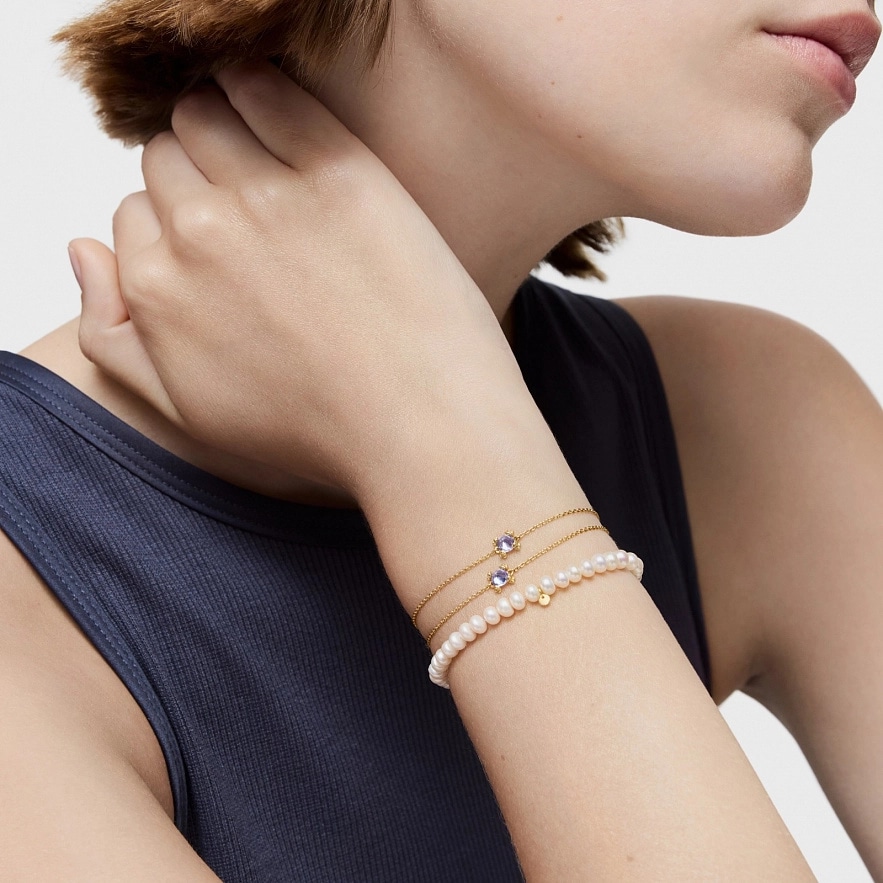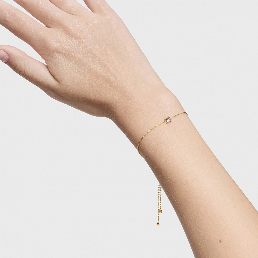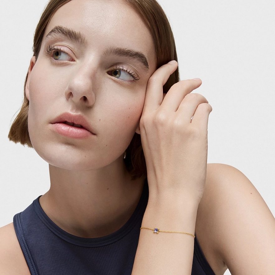 Браслет TOUS Color Pills з 18-каратного жовтого золота з огранованим круглим танзанітом. Розмір каменю: 4 мм. Довжина браслета: 24 см. Застібка-слайдер.