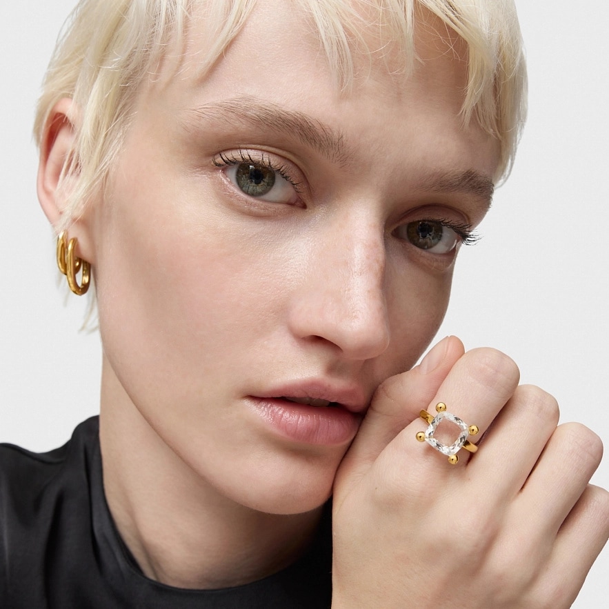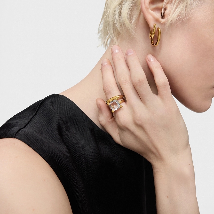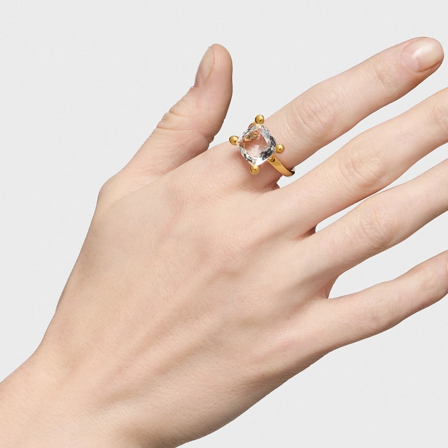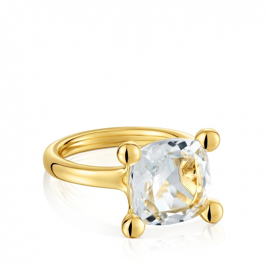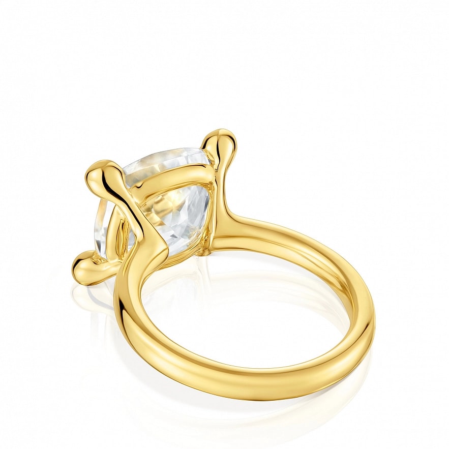 Каблучка TOUS Color White зі срібла 925 проби з покриттям Vermeil та огранованим гірським кришталевим кварцем квадратної форми. Розмір дорогоцінного каменю: 11 мм.
