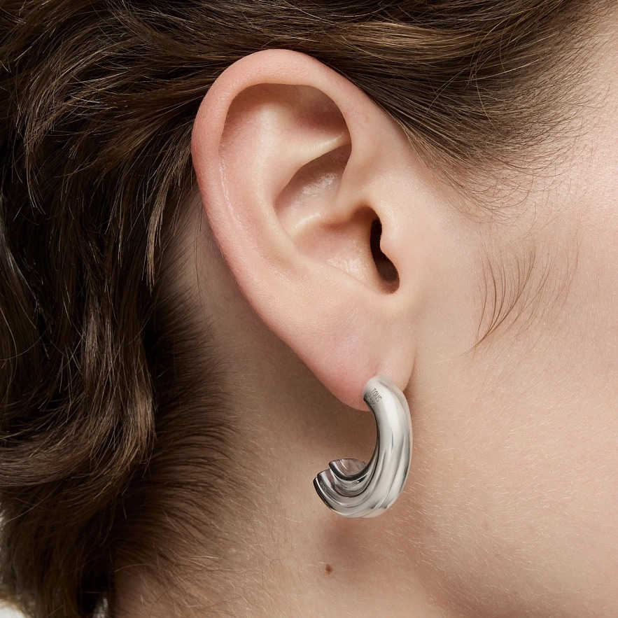 Сережки-кільця TOUS 1950 зі срібла 925 проби з внутрішнім мотивом у вигляді ведмедика. Розмір сережок: 25 мм.