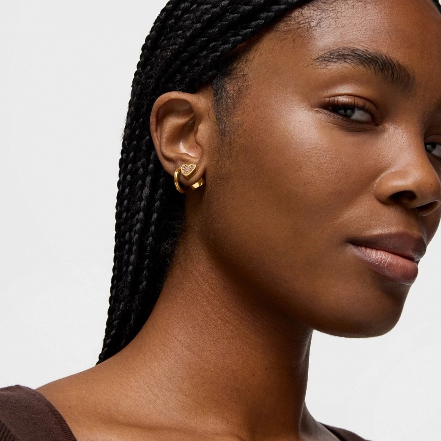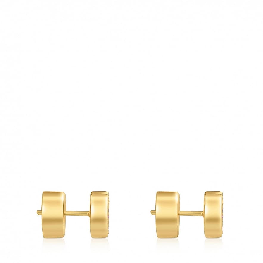 Сережки TOUS 1950 у формі серця зі срібла 925 проби з покриттям Vermeil , та круглими огранованими родолітами. Розмір дорогоцінних каменів: 1 мм. Розмір сережок: 9 мм.