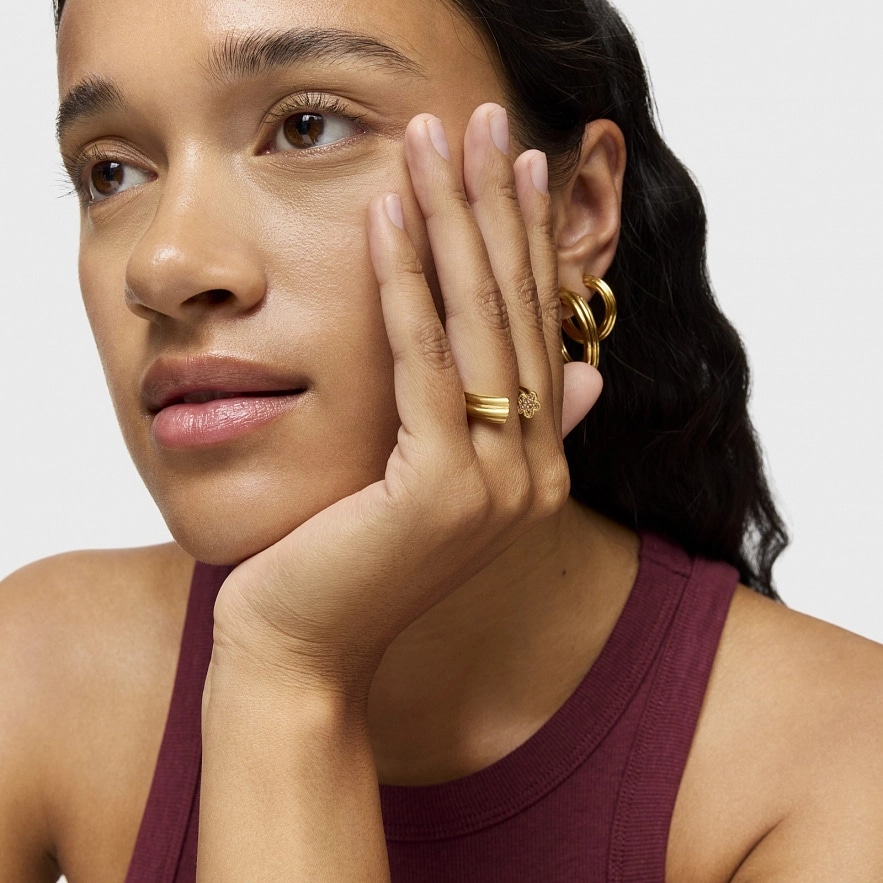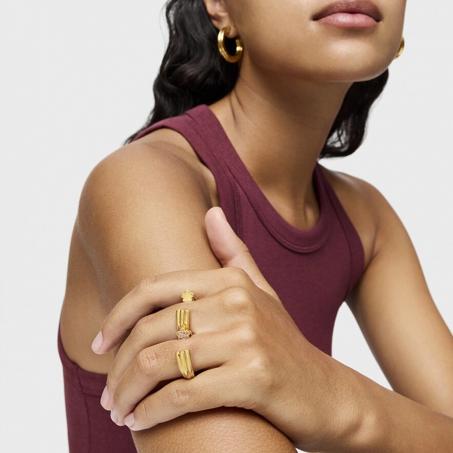 Каблучка TOUS 1950 зі срібла 925 проби з покриттям Vermeil з внутрішнім мотивом у формі квітки з круглими огранованими родолітами. Розмір дорогоцінних каменів: 1 мм. Ширина мотиву: 7,10 мм.