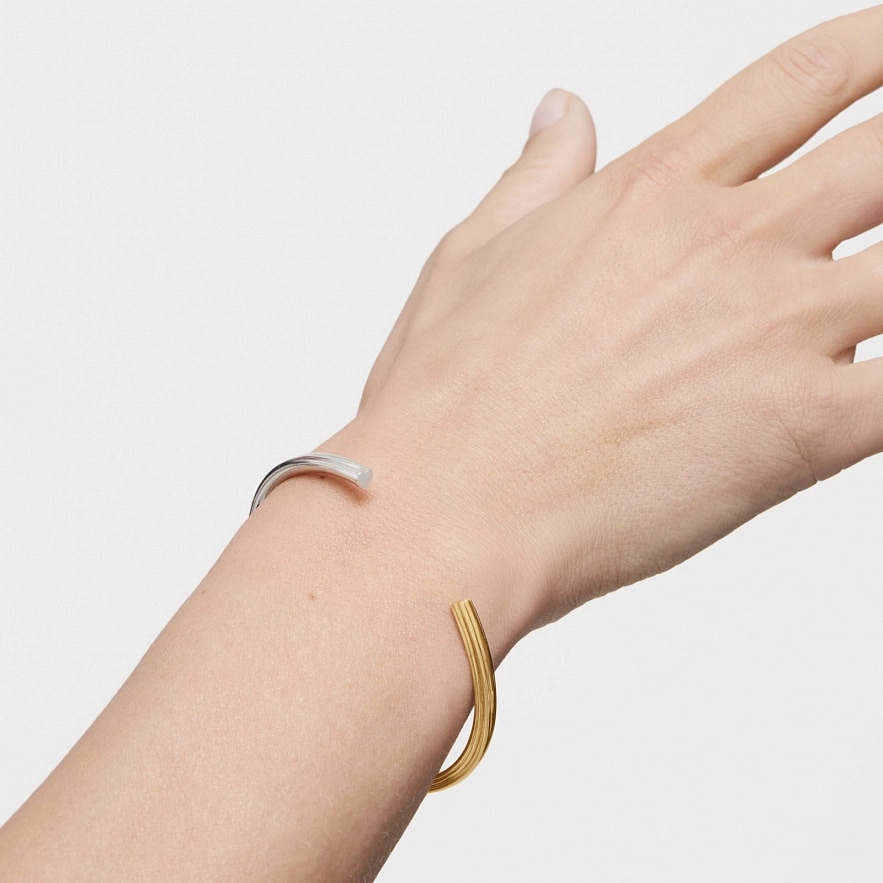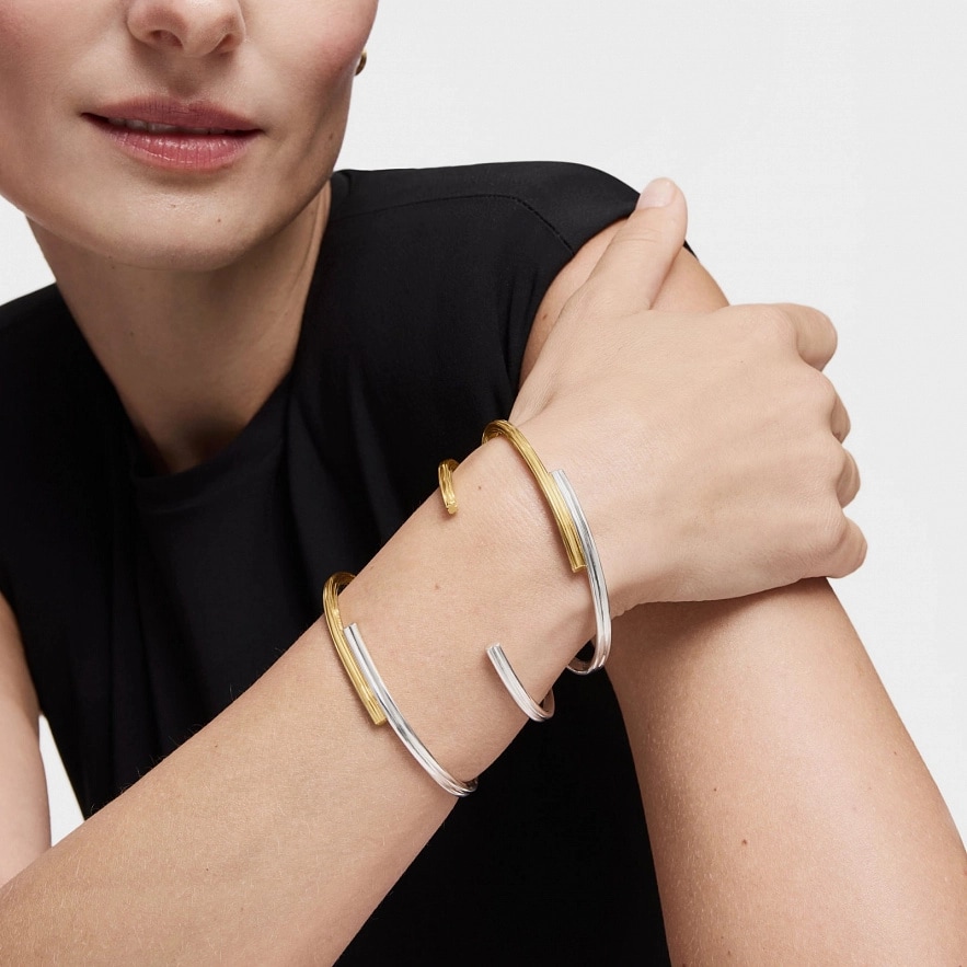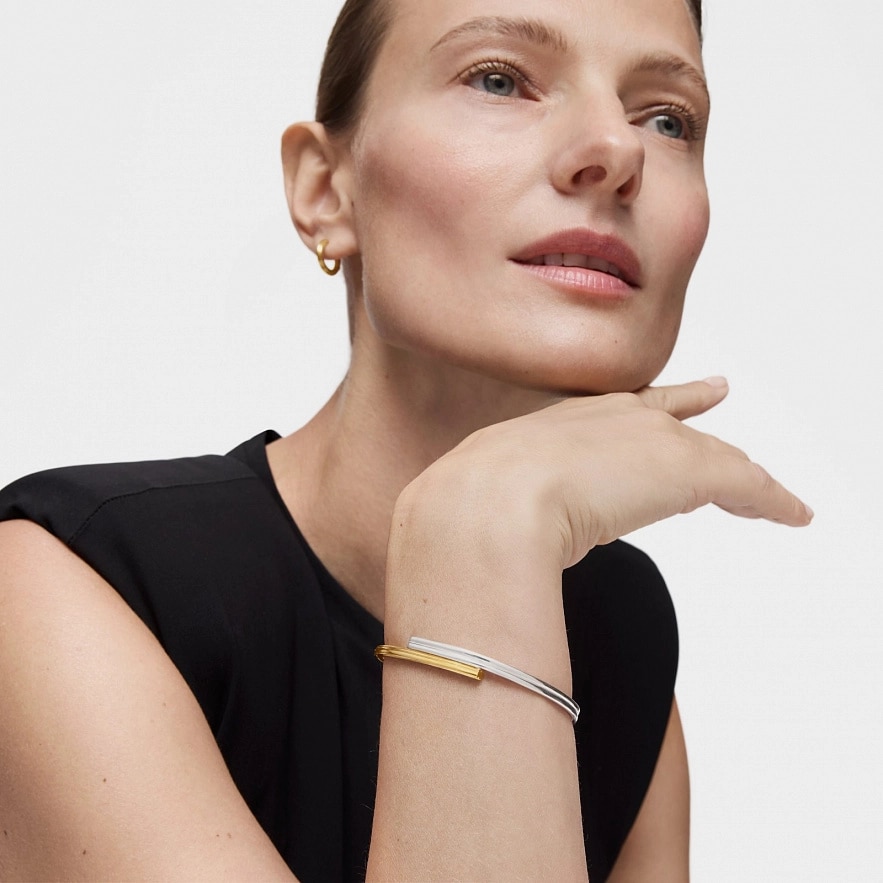Браслет TOUS 1950 зі срібла 925 проби з покриттям Vermeil , з внутрішнім мотивом у формі ведмедика та внутрішнім мотивом у формі серця. Ширина мотивів: 3,5 мм.