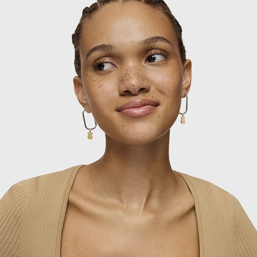 Сережки-кільця TOUS Sweet Dolls зі срібла 925 проби з покриттям Vermeil ,зі срібла 925 проби та з мотивами ведмедиків-підвісок. Розмір ведмедика: 10 мм. Розмір сережки: 32 мм.