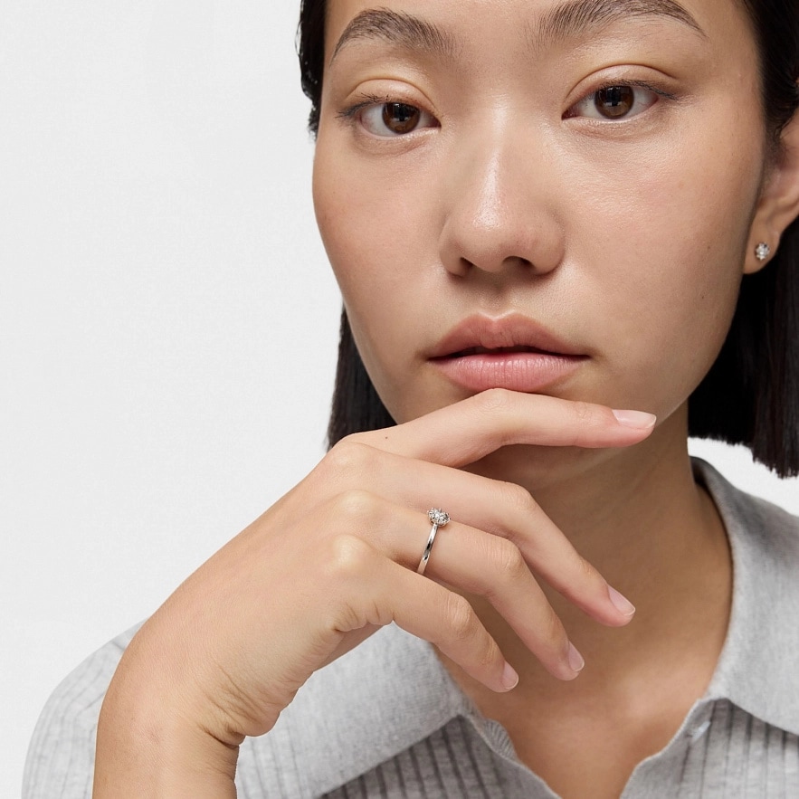 Каблучка TOUS Les Classiques з білого золота 18 карат з діамантовою вставкою 0.25 карата H/SI діамантового ограновування. Розмір розетки: 4.5 мм. Техніка виготовлення: Мікроф'южн.