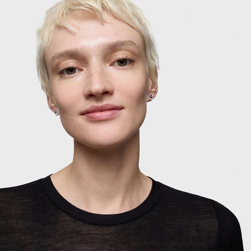 Сережки TOUS Color Bear LGG зі срібла 925 проби з синтетичним сапфіром бузкового кольору, вирощеним в лабораторії, у формі ведмедика. Розмір сережок: 8 мм. Примітка: Виріб створено з використанням лабораторно вирощених дорогоцінних каменів.
