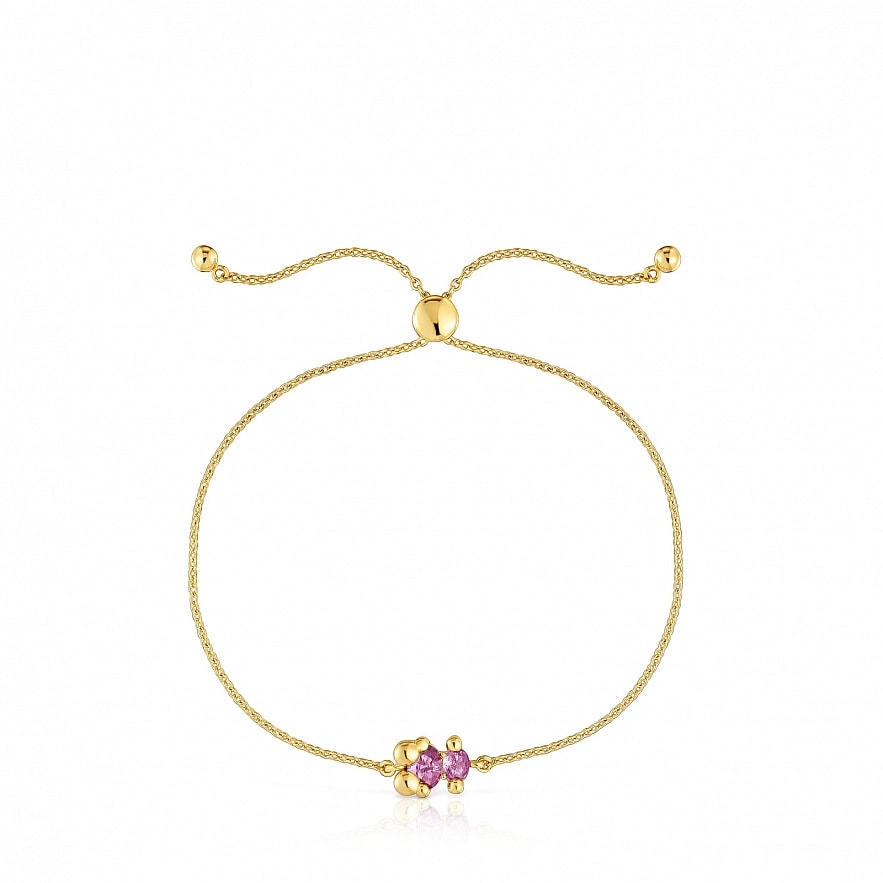 Браслет TOUS Color Bear LGG зі срібла 925 проби з покриттям Vermeil та огранованим сапфіром бузкового кольору у формі ведмедика, вирощеним у лабораторії. Розмір мотиву: 8 мм. Довжина браслета: 25,5 см. Застібка-слайдер. Примітка: Виріб створено з використанням лабораторно вирощених дорогоцінних каменів.