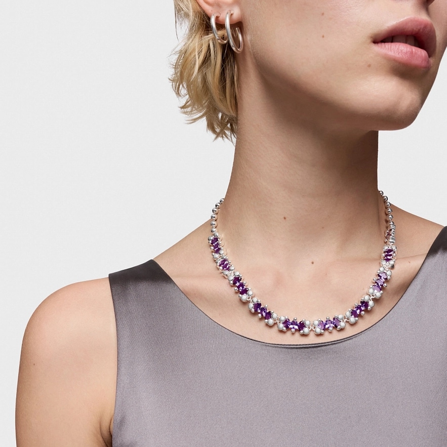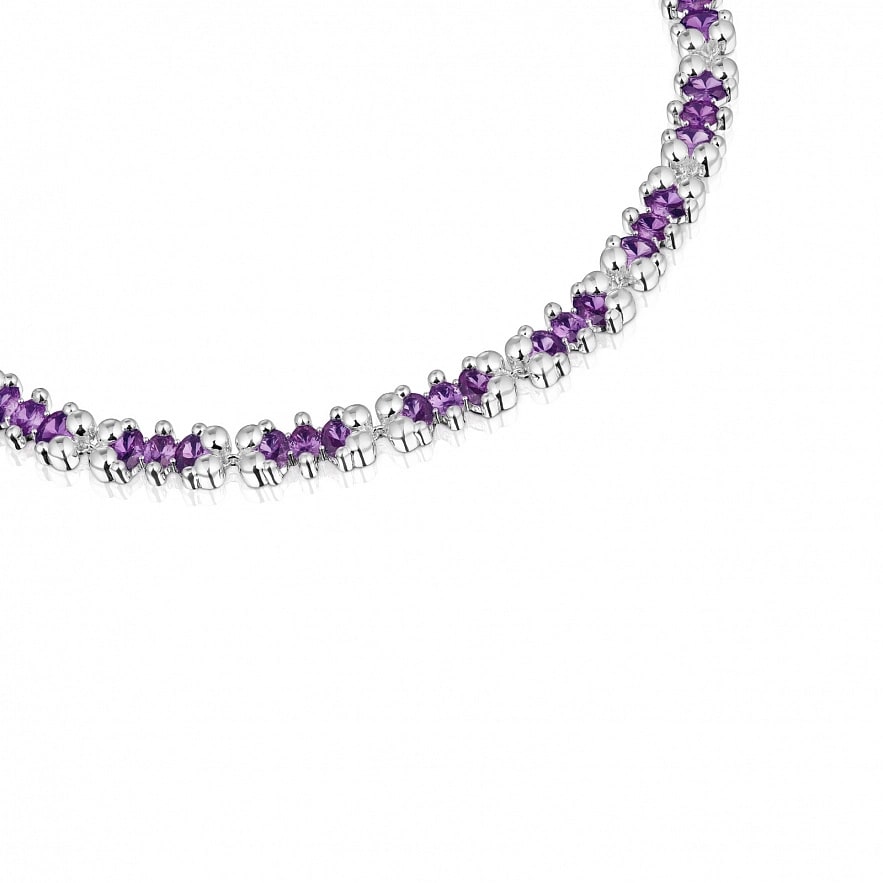 Намисто TOUS Color Bear LGG зі срібла 925 проби з овального синтетичного сапфіра бузкового кольору у формі ведмедика, вирощеного в лабораторії. Розмір мотивів: 22,10 мм. Довжина намиста: 45 см. Застібка овальний лобстер.
