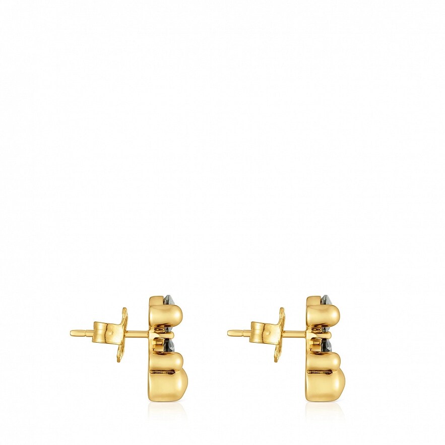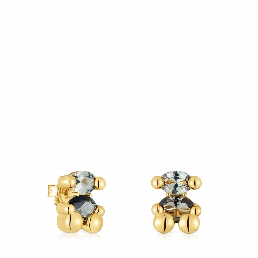 Сережки TOUS Color Bear LGG зі срібла 925 проби з покриттям Vermeil та синтетичною зеленою шпінеллю овального огранювання у формі ведмедика. Розмір сережок: 13 мм. Примітка: Виріб створено з використанням лабораторно вирощених дорогоцінних каменів.
