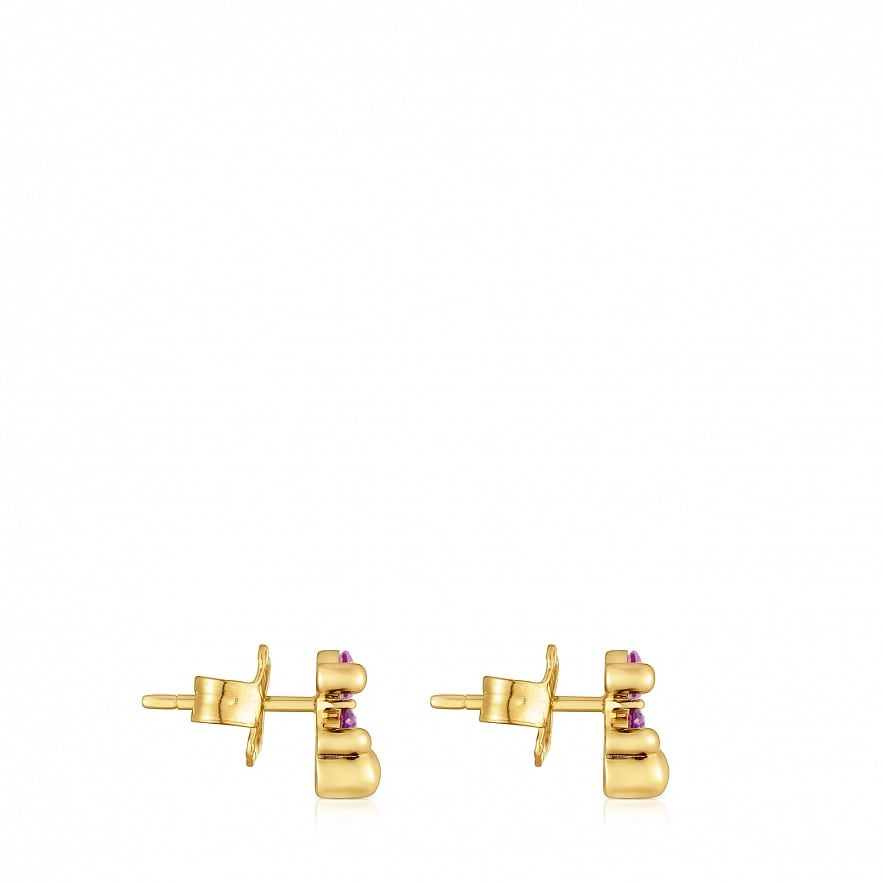 Сережки TOUS Color Bear LGG зі срібла 925 проби з покриттям Vermeil та сапфіром бузкового кольору у формі ведмедика овального огранювання, вирощеним у лабораторії. Розмір сережок: 8 мм. Примітка: Виріб створено з використанням лабораторно вирощених дорогоцінних каменів.