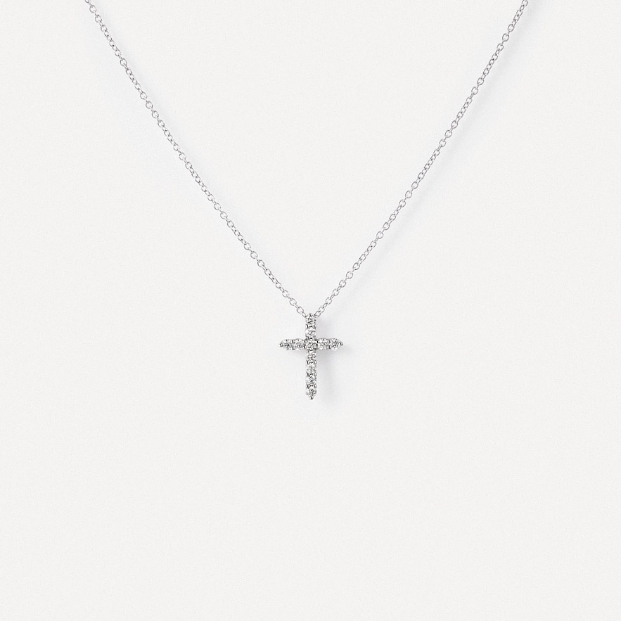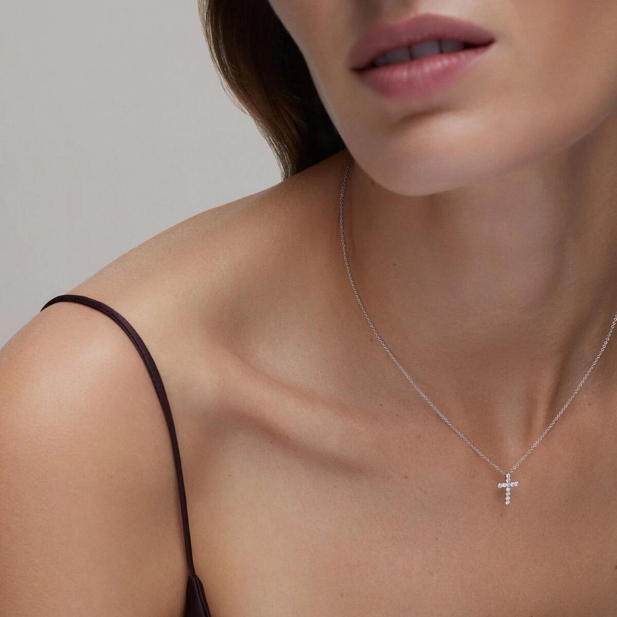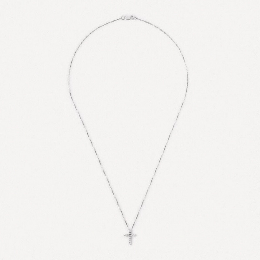 Намисто TOUS Atelier з білого золота 18 карат з діамантами та кулоном хрестиком. Загальна вага діамантів: 0.23 карат. Якість діамантів: H/SI. Довжина намиста: 50 см. Застібка-метелик.