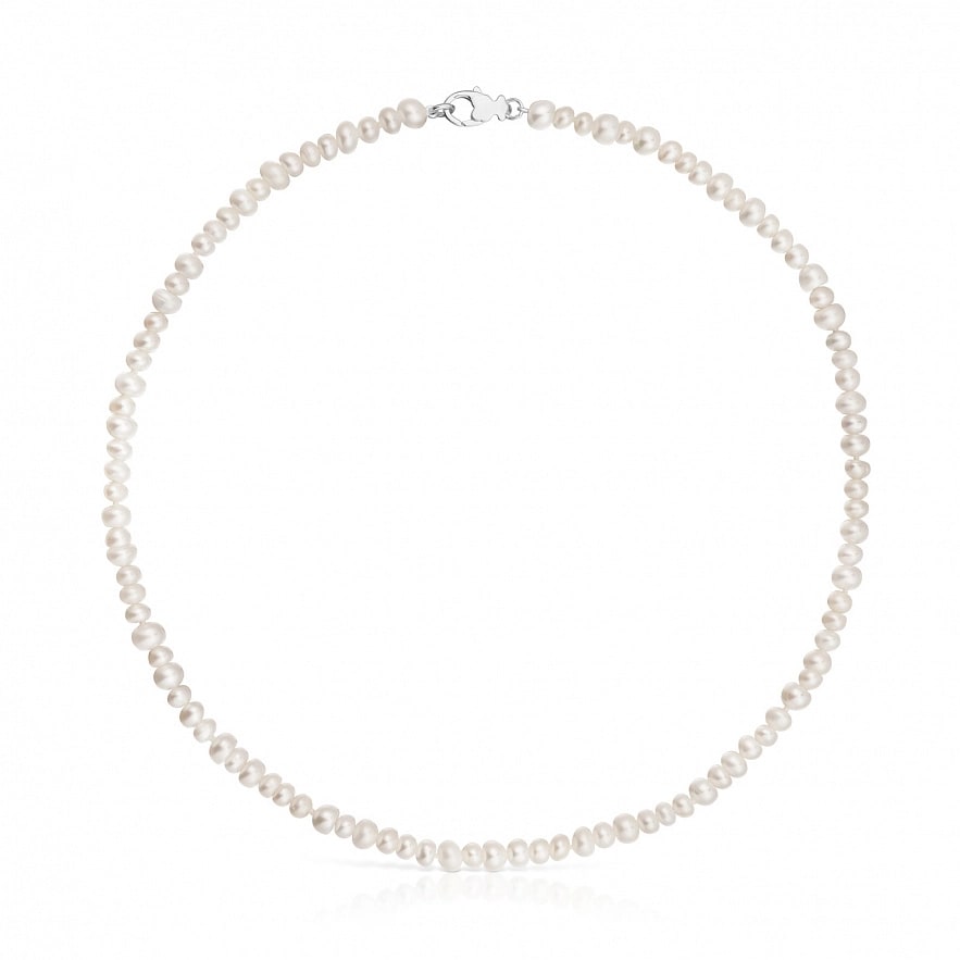Намисто TOUS Basic зі срібла 925 проби з культивованими прісноводними перлинами. Розмір культивованих перлин: 4,5-6 мм. Довжина намиста: 45 см. Застібка-лобстер з шармом ведмедика.