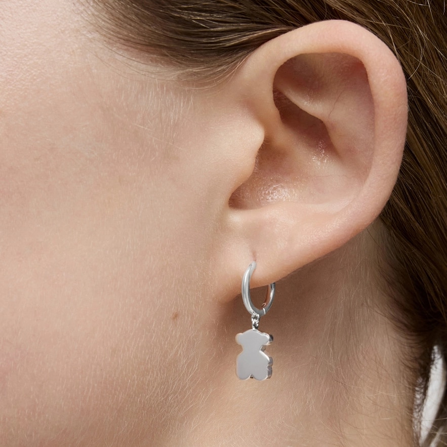 Сережки TOUS Sweet Dolls зі срібла 925 проби у формі кільця з підвіскою у вигляді ведмедика. Розмір сережок: 10 мм. Розмір сережок: 8 мм.