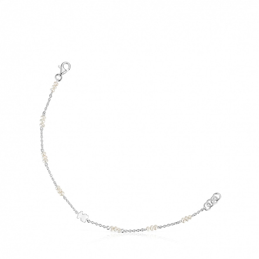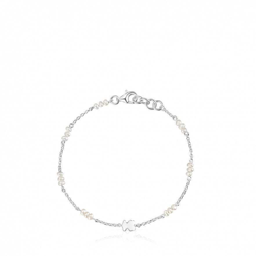 Браслет TOUS Sweet Dolls зі срібла 925 проби з культивованими прісноводними перлинами та ведмедиком. Розмір ведмедика: 6 мм. Розмір культивованих перлин: 2 мм. Довжина браслету: 17 см. Застібка лобстер.