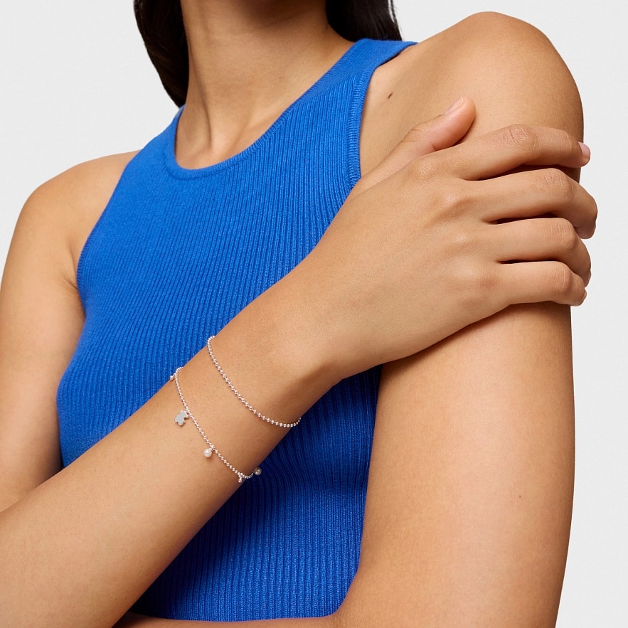 Браслет TOUS Sweet Dolls зі срібла 925 проби, підвіски з культивованої прісноводної перлини та брелок-ведмедик. Розмір ведмедика: 6 мм. Розмір культивованих перлин: 3 мм. Довжина браслета: 17 см. Застібка-лобстер.