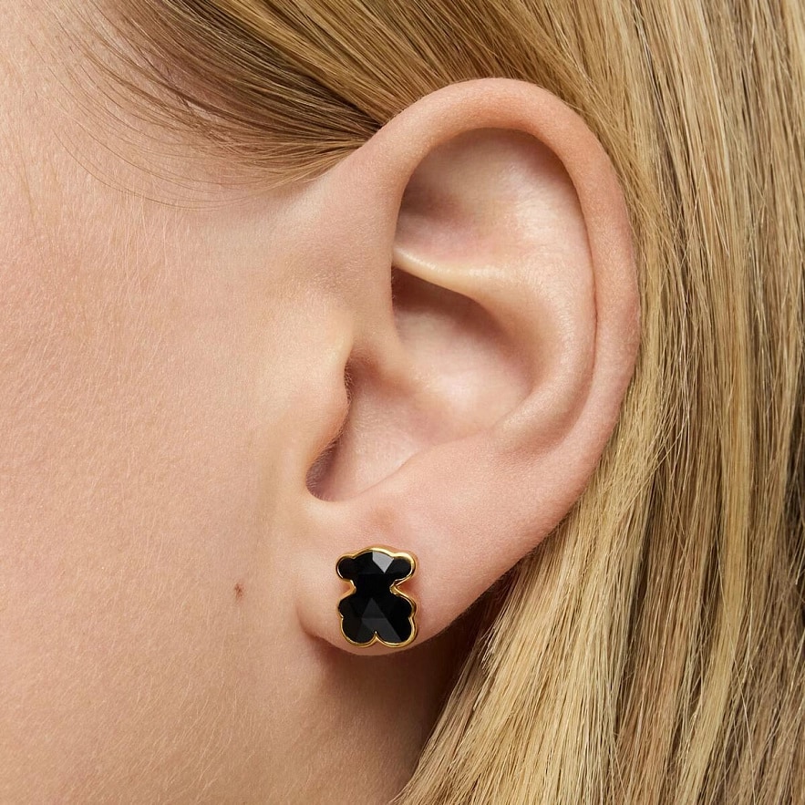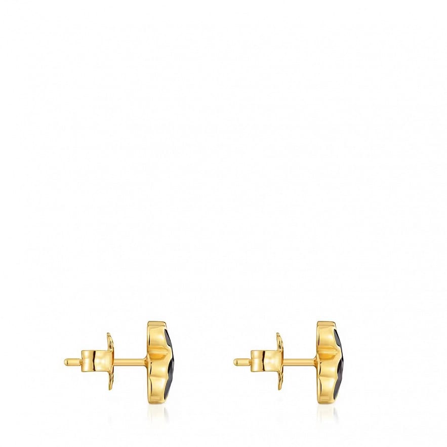 Сережки TOUS Icon Color зі срібла 925 проби з покриттям Vermeil , з огранованим оніксом у формі ведмедика. Розмір сережки: 10 мм.