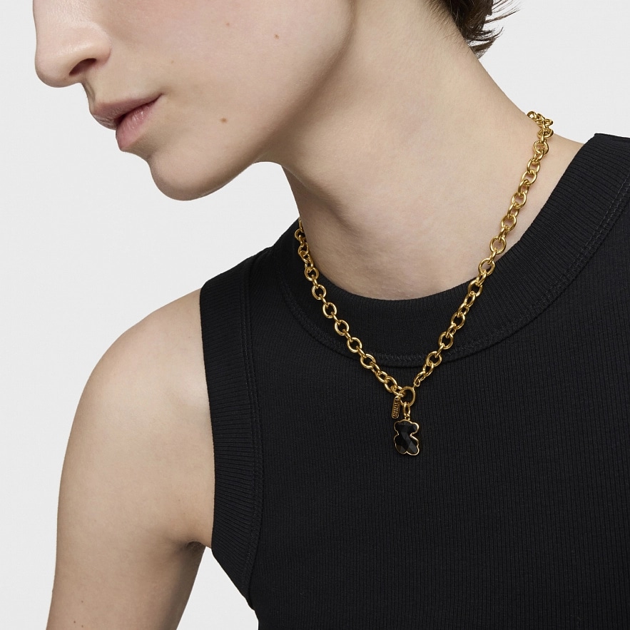 Кулон TOUS Icon Color зі срібла 925 проби з покриттям Vermeil та мотивом ведмедика з ограненого оніксу. Розмір ведмедика: 16 мм. Цей виріб не включає ланцюжок.
