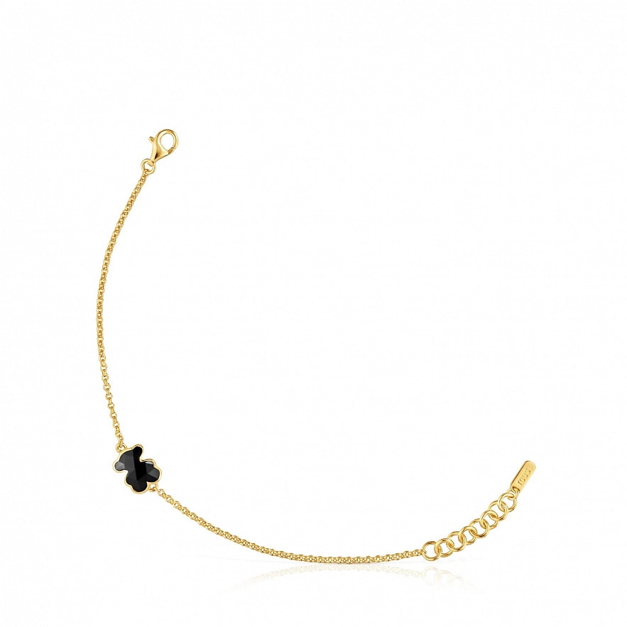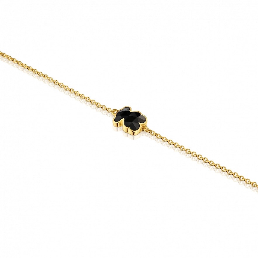 Браслет TOUS Icon Color зі срібла 925 проби з покриттям Vermeil та мотивом ведмедя з огранованого оніксу. Розмір ведмедика: 10 мм. Довжина браслета: 17,5 см. Застібка-лобстер.