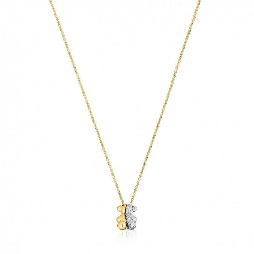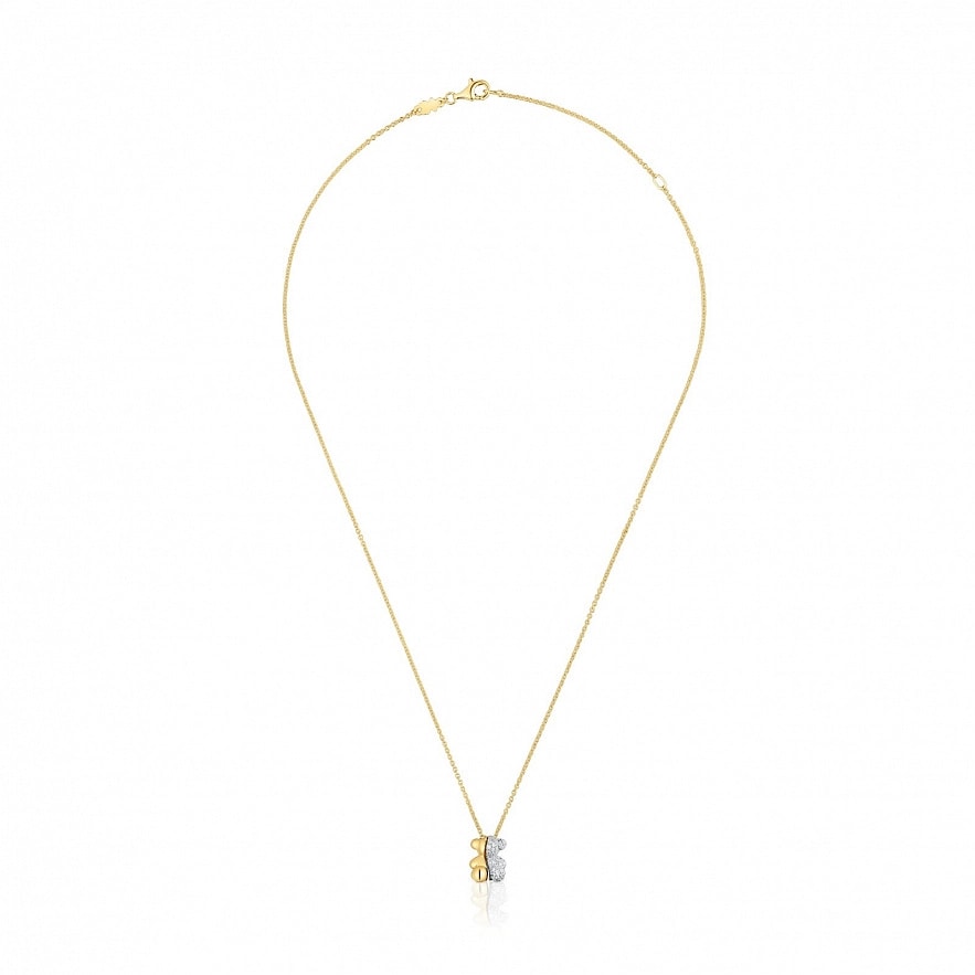 Намисто TOUS Bold Bear з жовтого золота 18 карат, білого золота 18 карат і діамантів 0,27 карата. Якість діамантів: H/SI. Розмір ведмедика: 11 мм. Довжина намиста: 45 см. Застібка лобстер. Цей виріб складається з двох частин, з'єднаних разом, щоб сформувати ведмедика.