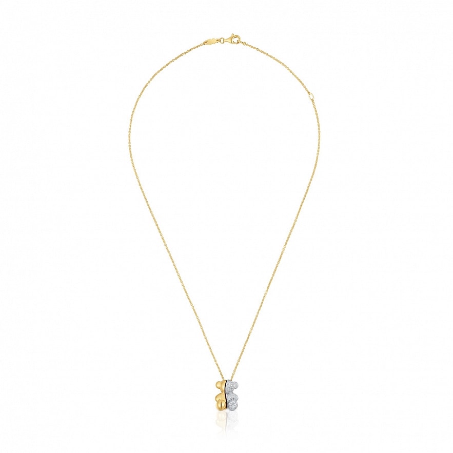 Намисто TOUS Bold Bear з жовтого золота 18 карат, білого золота 18 карат та діамантів 0,65 карата. Якість діамантів: H/SI. Розмір ведмедика: 16 мм. Довжина намиста: 45 см. Застібка лобстер. Цей виріб складається з двох частин, з'єднаних разом, щоб сформувати ведмедика.