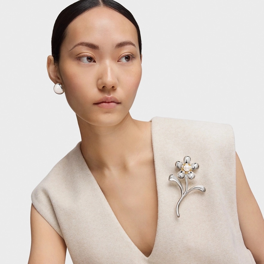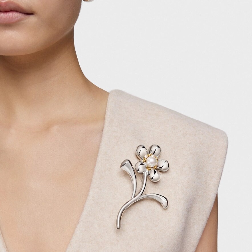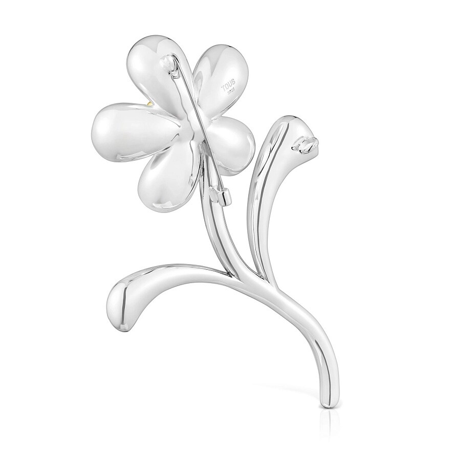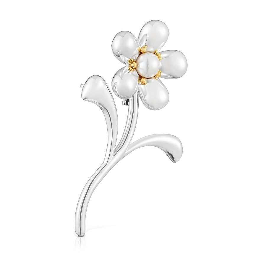 Брошка TOUS Daisy зі срібла 925 проби, покриття золотом 18-карат, з квітковим мотивом і культивованою прісноводною перлиною. Розмір брошки: 100 мм.