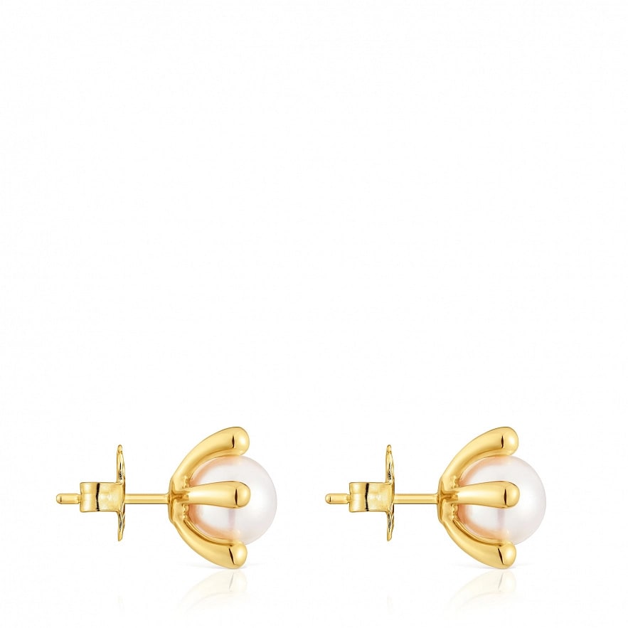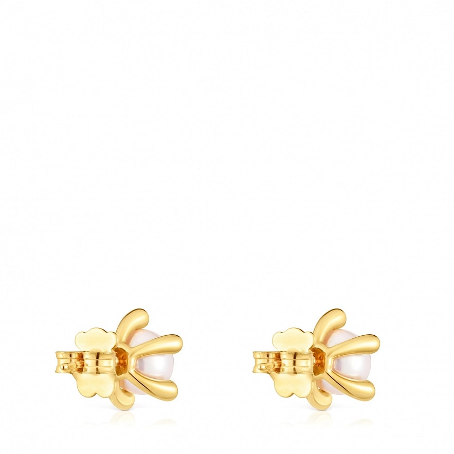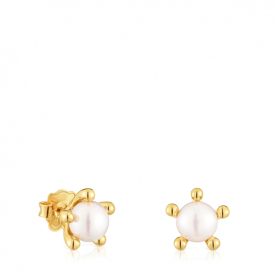 Сережки TOUS Garden зі срібла 925 проби з покриттям Vermeil з квітковим мотивом та культивованими прісноводними перлинами. Розмір сережок: 8 мм.