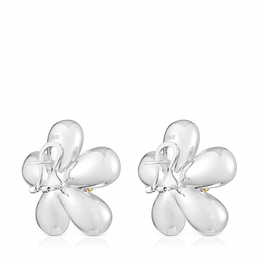 Сережки TOUS Daisy зі срібла 925 проби з покриттям Vermeil з квітковим мотивом та культивованими прісноводними перлинами. Розмір культивованої перлини: 10,5-11 мм. Розмір сережки: 36 мм.