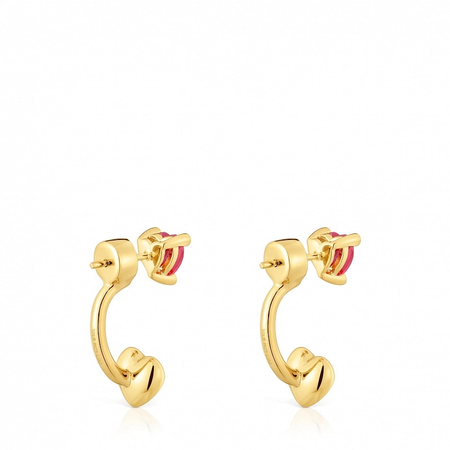 Сережки TOUS Garden of Love LGG зі срібла 925 проби з покриттям Vermeil з мотивом серця та синтетичним рубіном, огранки у формі серця, які можна носити разом або окремо. Розмір дорогоцінного каменю: 6 мм. Розмір мотиву серця: 8 мм. Загальна довжина сережок: 16 мм. Примітка: виріб створений з лабораторно вирощених дорогоцінних каменів.
