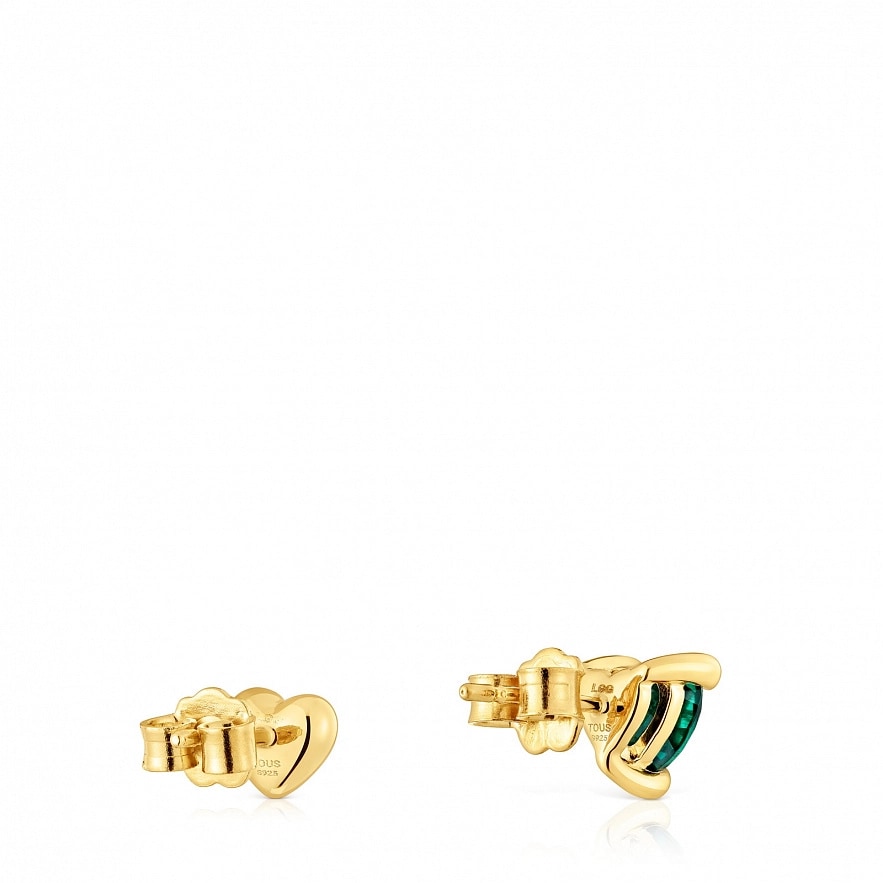 Сережки TOUS Garden of Love LGG зі срібла 925 проби з покриттям Vermeil з мотивом серця та синтетичним смарагдом, огранки у формі серця. Розмір сережок: 9 мм. Примітка: виріб створено з використанням лабораторно вирощених дорогоцінних каменів.