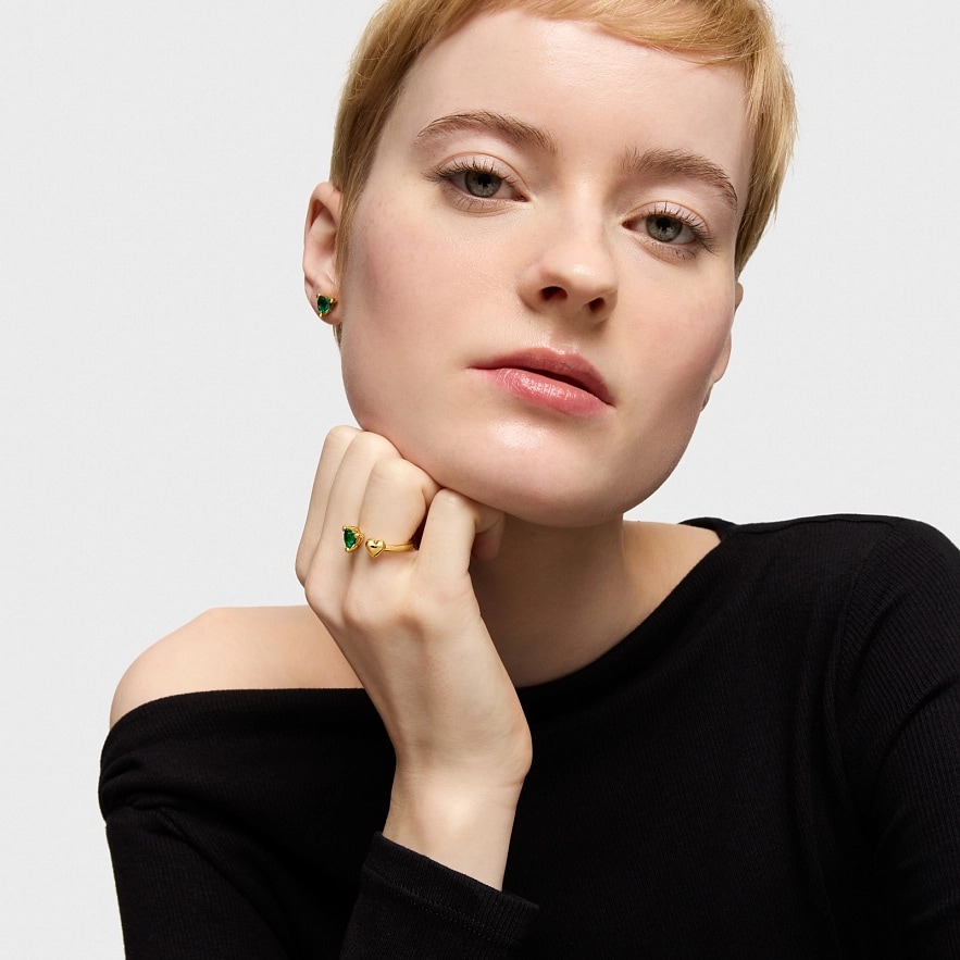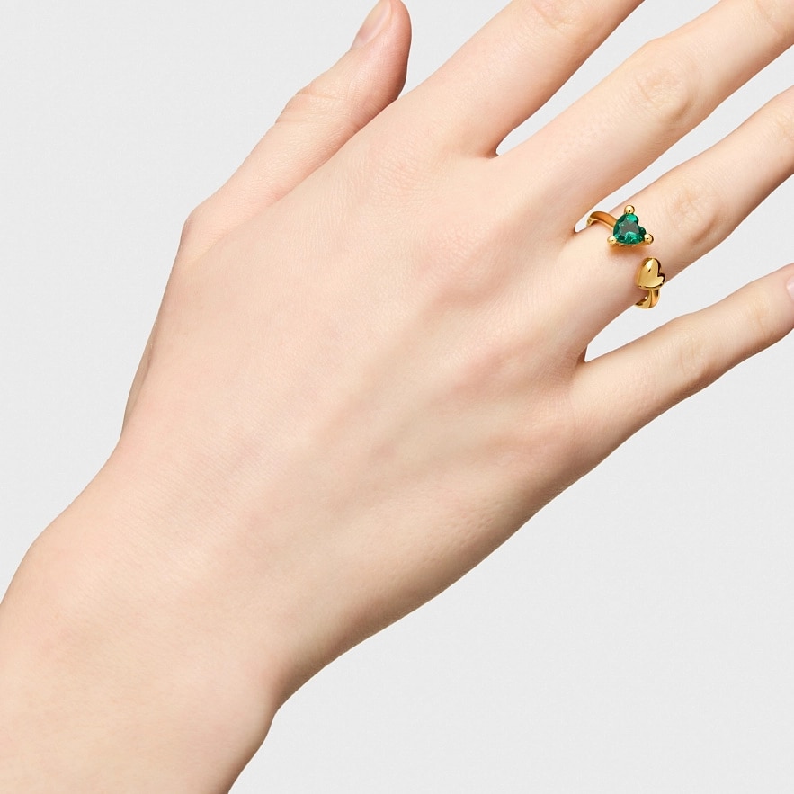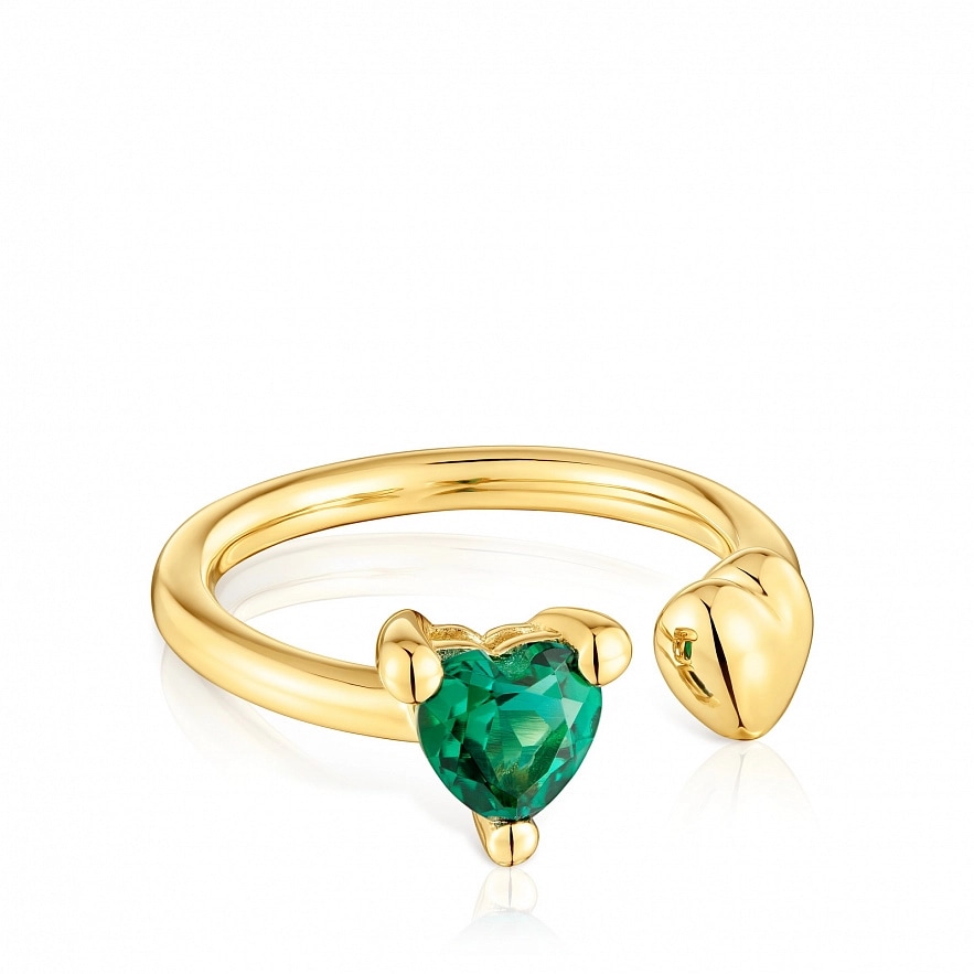 Каблучка TOUS Garden of Love LGG зі срібла 925 проби з покриттям Vermeil з мотивом серця та синтетичним смарагдом огранки у формі серця. Розмір каменю: 6 мм. Розмір мотиву: 6 мм. Примітка: виріб створено з використанням лабораторно вирощених дорогоцінних каменів.
