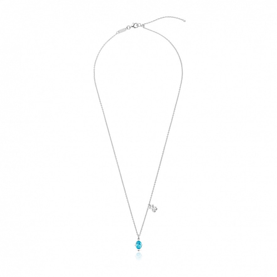 Намисто TOUS Bold Bear LGG з мотивом ведмедика зі срібла 925 проби з огранованим синтетичним блакитним сапфіром овального огранювання, вирощеним в лабораторії. Розмір дорогоцінного каменю: 8 мм. Розмір ведмедика: 7 мм. Загальна довжина кольє: 50 см. Застібка карабін. Примітка: Виріб створено з використанням лабораторно вирощених дорогоцінних каменів.