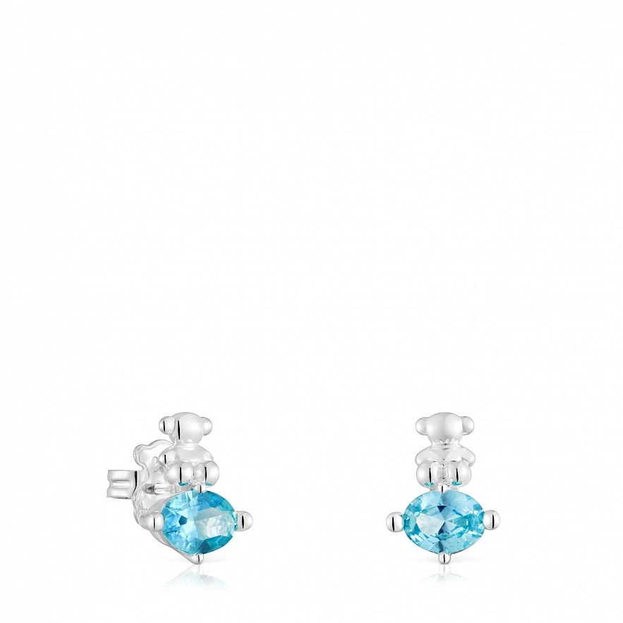 Сережки TOUS Bold Bear LGG з мотивом ведмедя зі срібла 925 проби з огранованим синтетичним блакитним сапфіром овального огранювання, вирощеним в лабораторії. Розмір сережок: 14 мм. Примітка: Виріб створено з використанням лабораторно вирощених дорогоцінних каменів.
